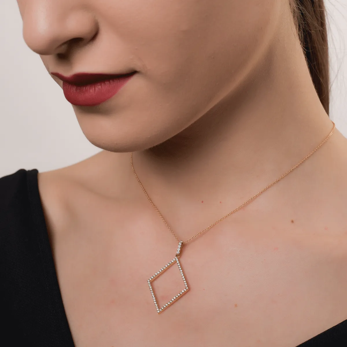 Lant cu pandantiv forma geometrica din aur roz cu diamante de 0.54ct