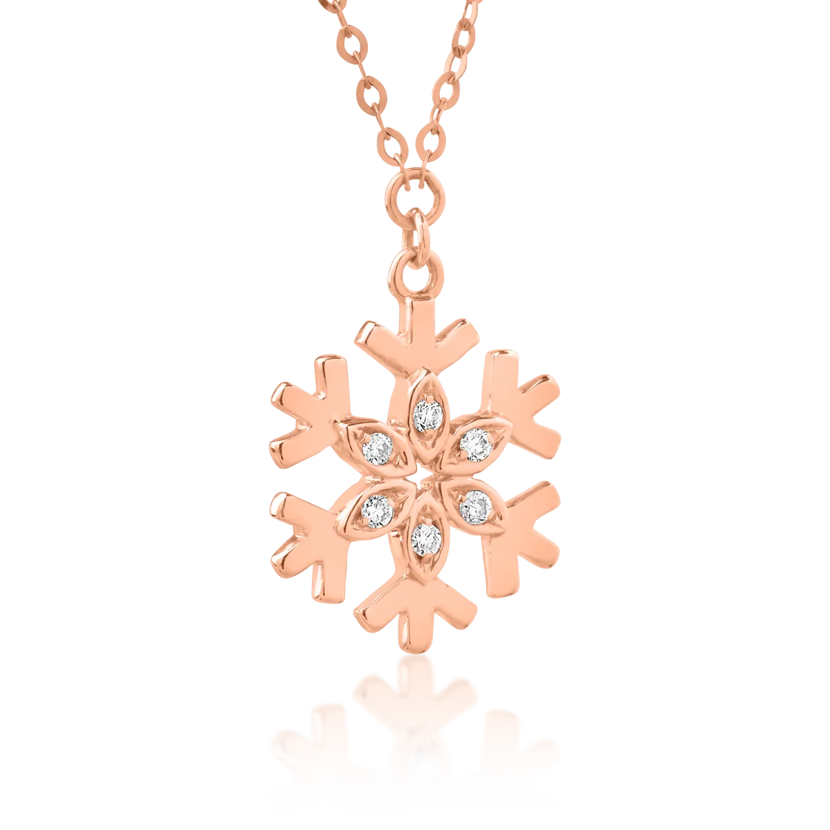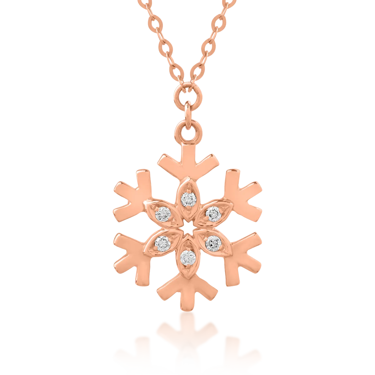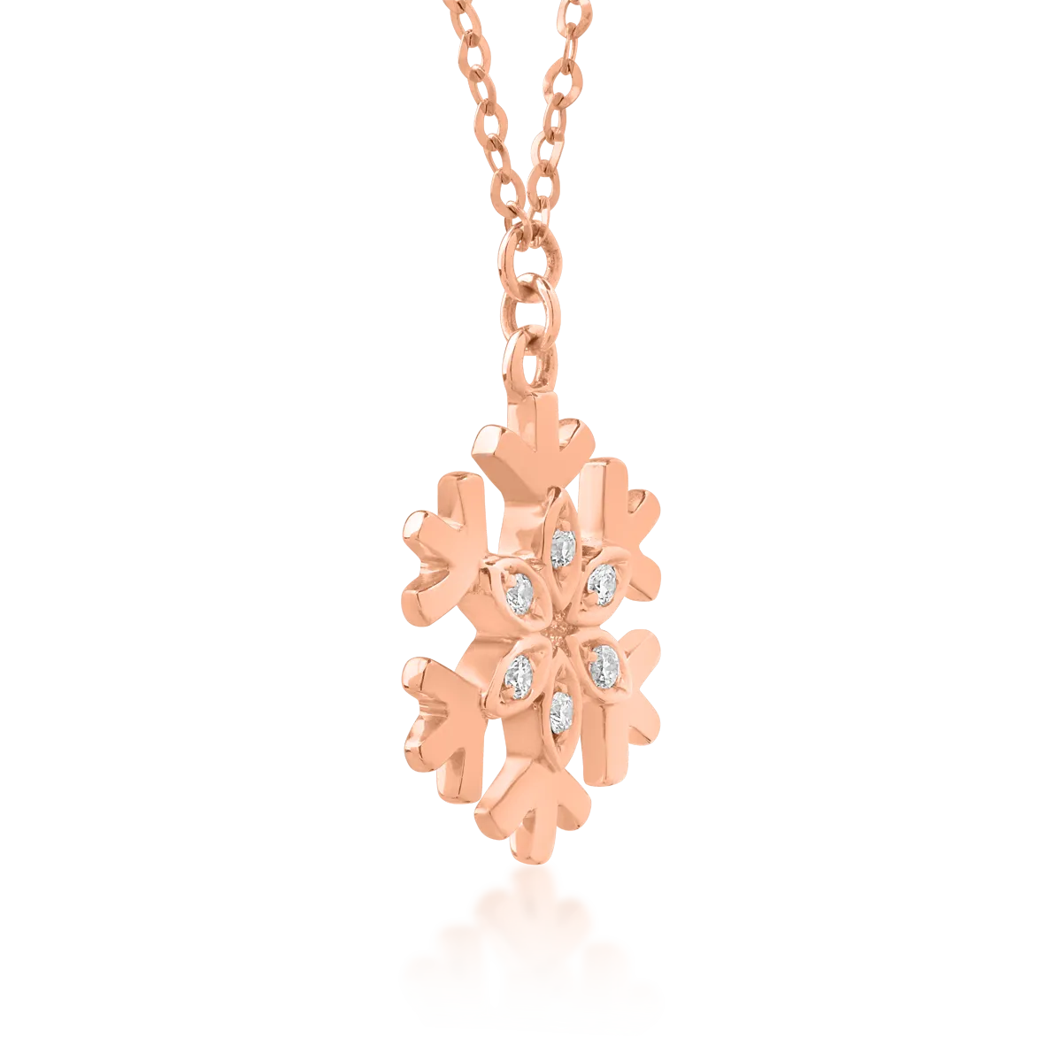 Lant cu pandantiv fulg de nea din aur roz cu diamante de 0.03ct