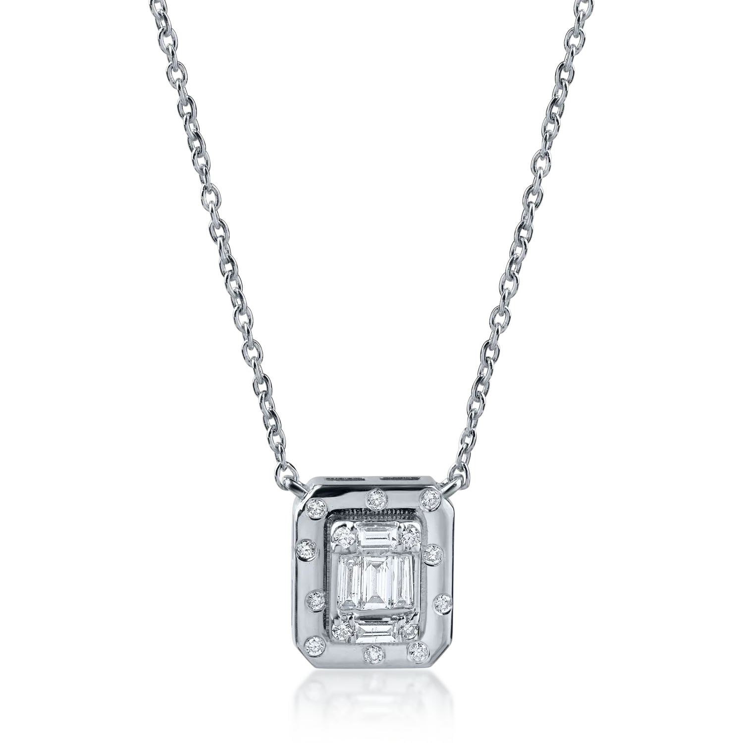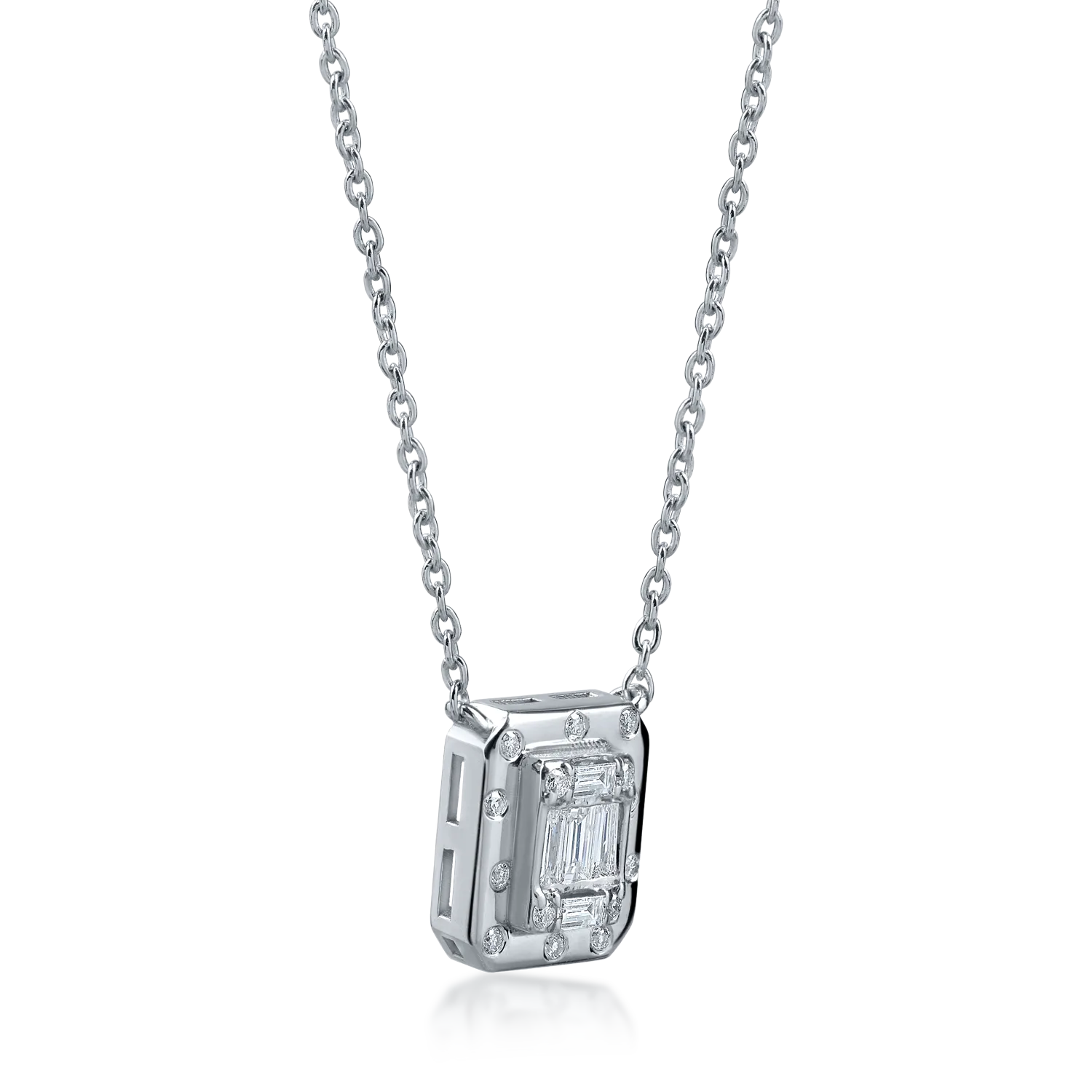 Lant cu pandantiv geometric din aur alb cu diamante baguette si rotunde de 0.1ct