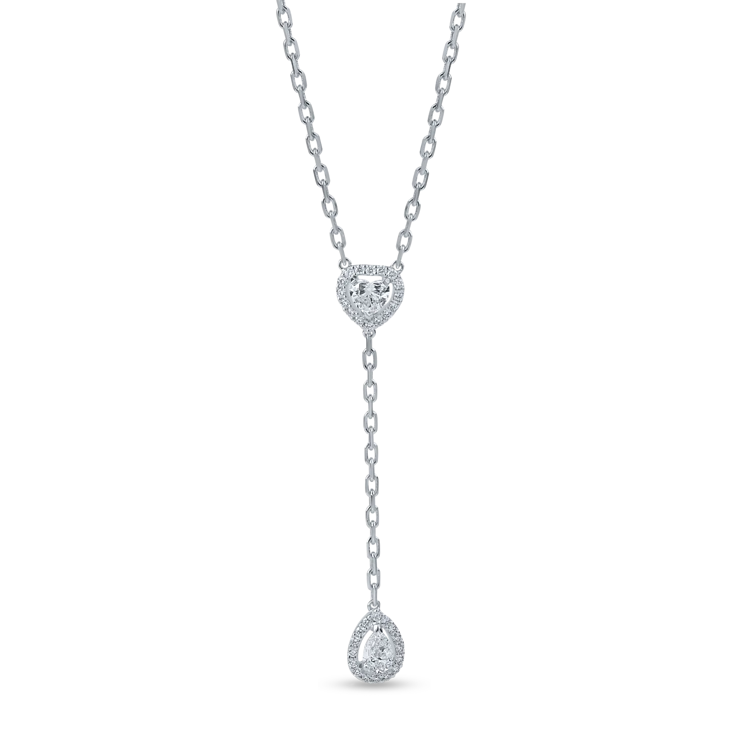 Lant cu pandantiv geometric din aur alb cu diamante pear, heart si rotunde de 1.09ct