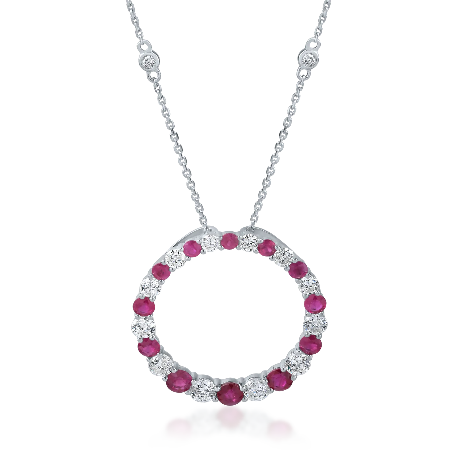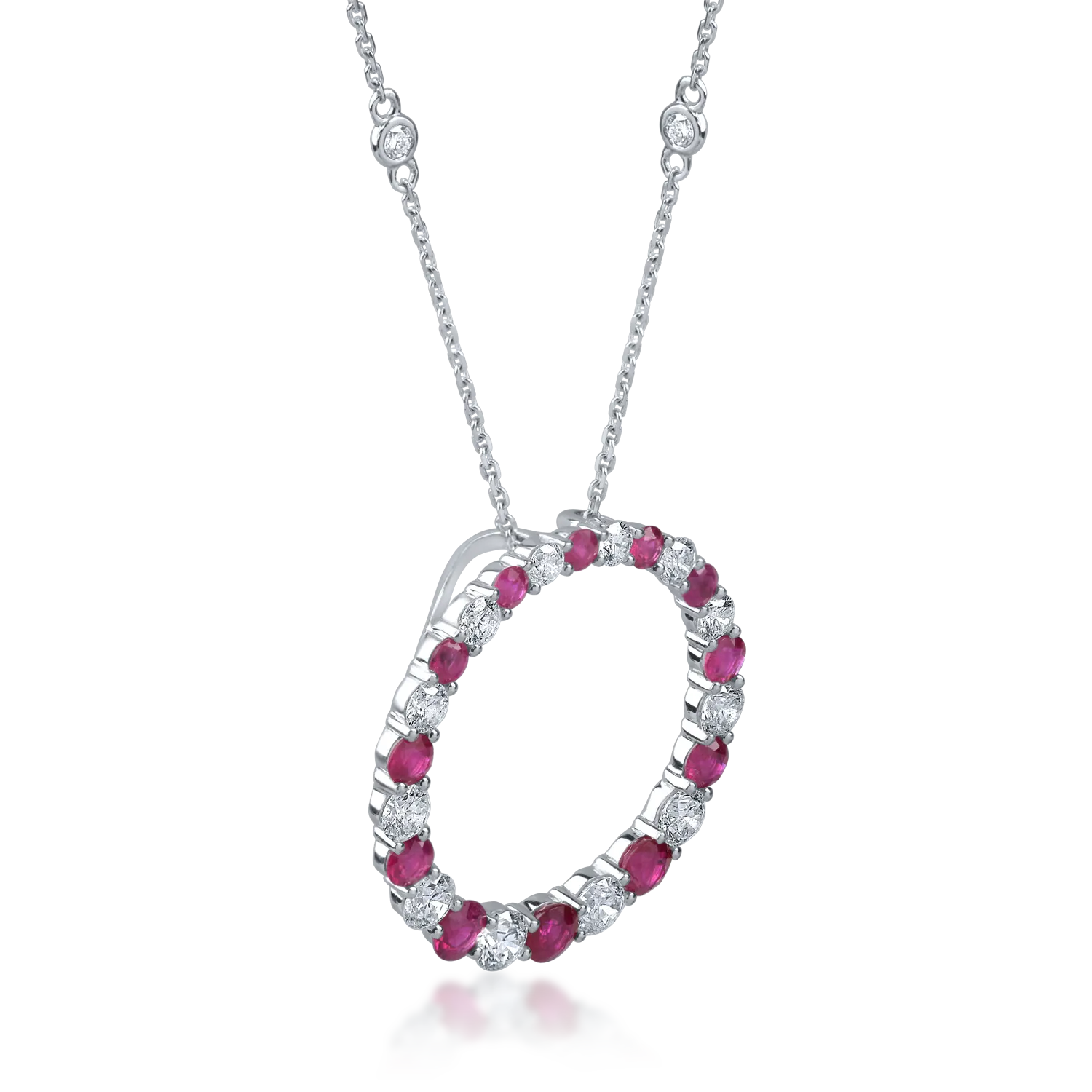 Lant cu pandantiv geometric din aur alb cu rubine de 1.54ct si diamante de 1.34ct