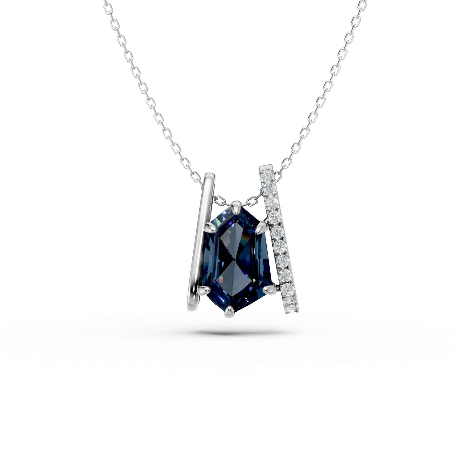 Lant cu pandantiv geometric din aur alb cu topaz london blue de 2.2ct si diamante de 0.1ct