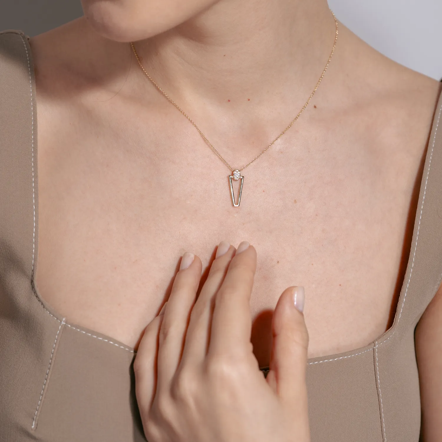Lant cu pandantiv geometric din aur galben cu zirconii