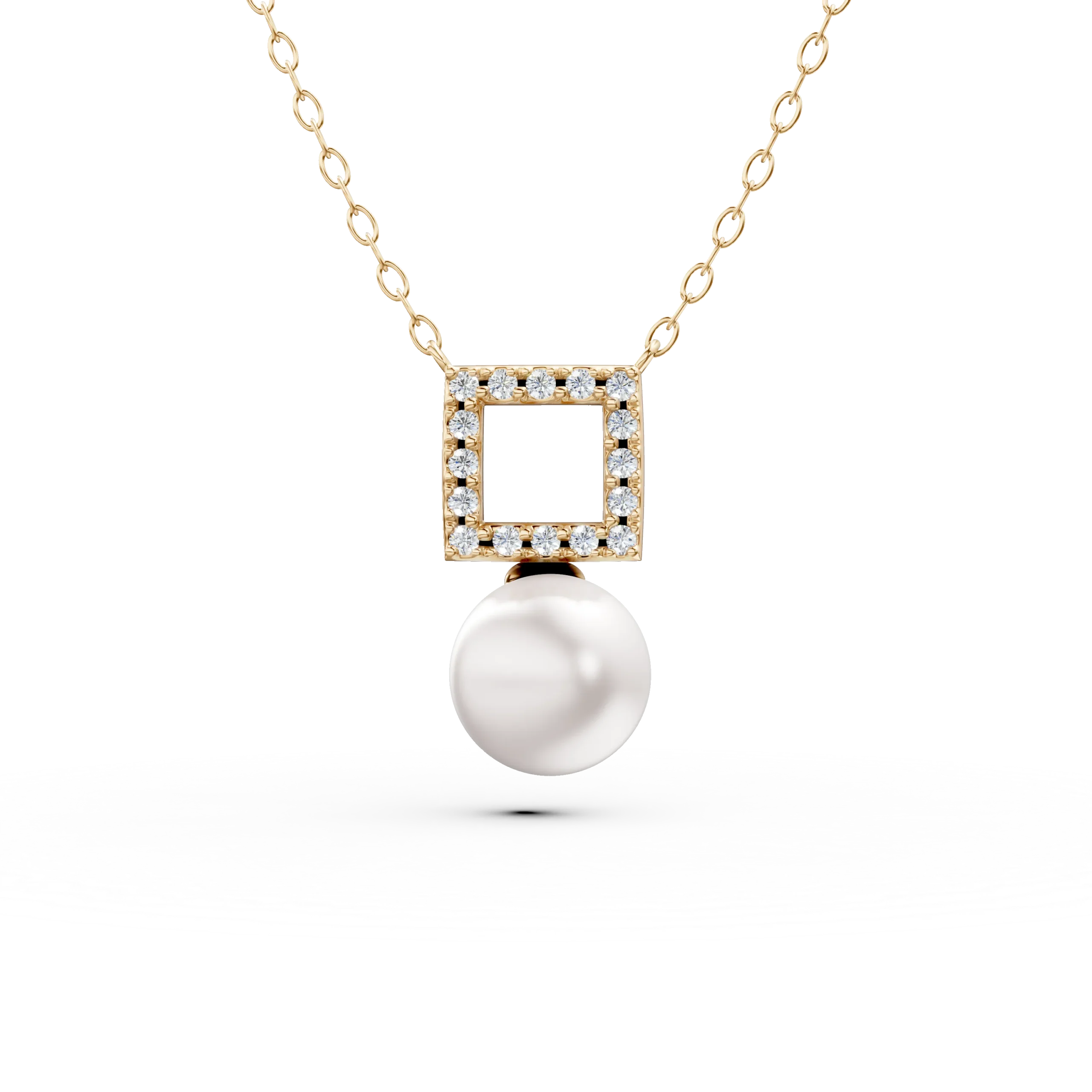 Lant cu pandantiv geometric din aur galben cu zirconii si perla sintetica