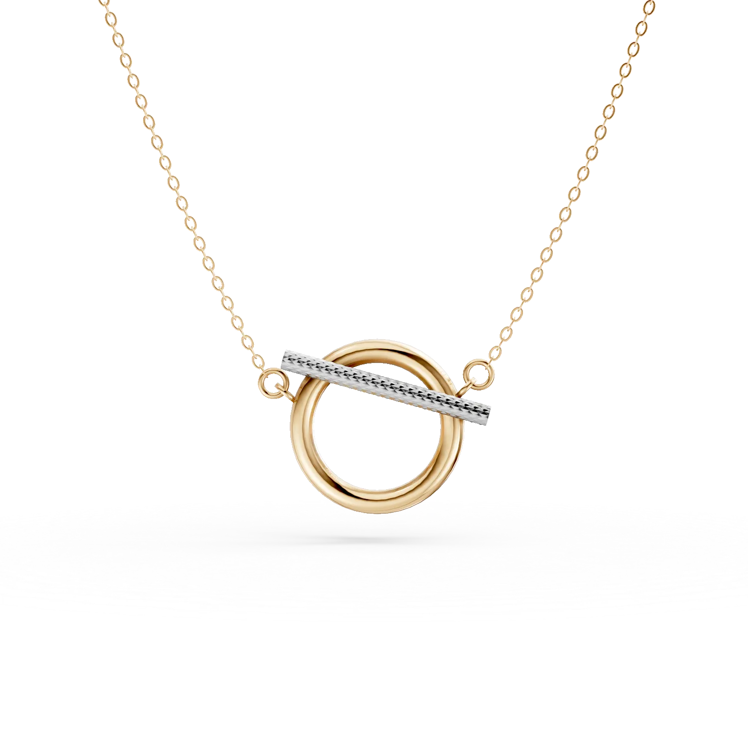 Fii fermecatoare fara prea mult efort. Acest lant cu pandantiv geometric din aur galben si detaliu din aur alb vorbeste despre tine si despre frumusetea ta, zi de zi, cu fiecare aparitie. Fii de neoprit cu bijuteriile TEILOR.