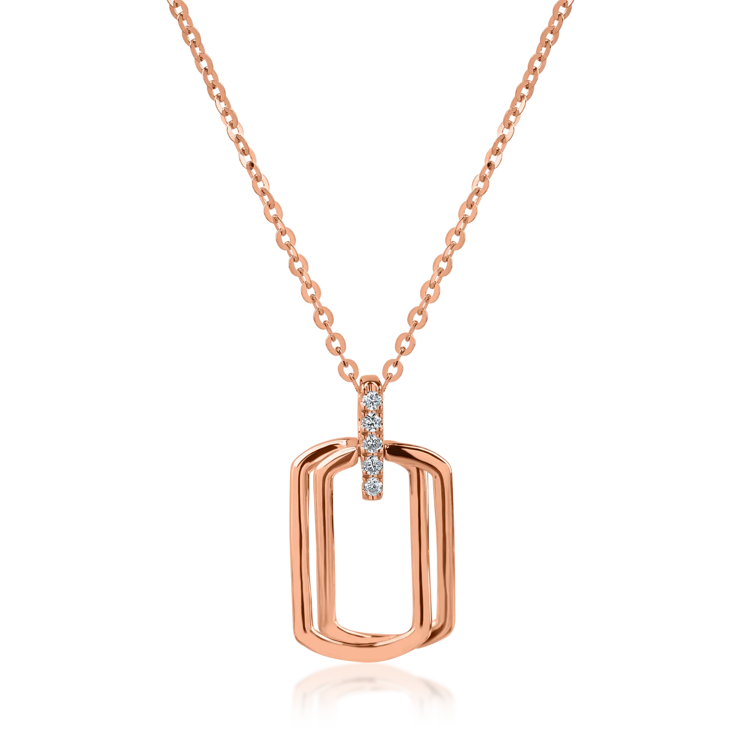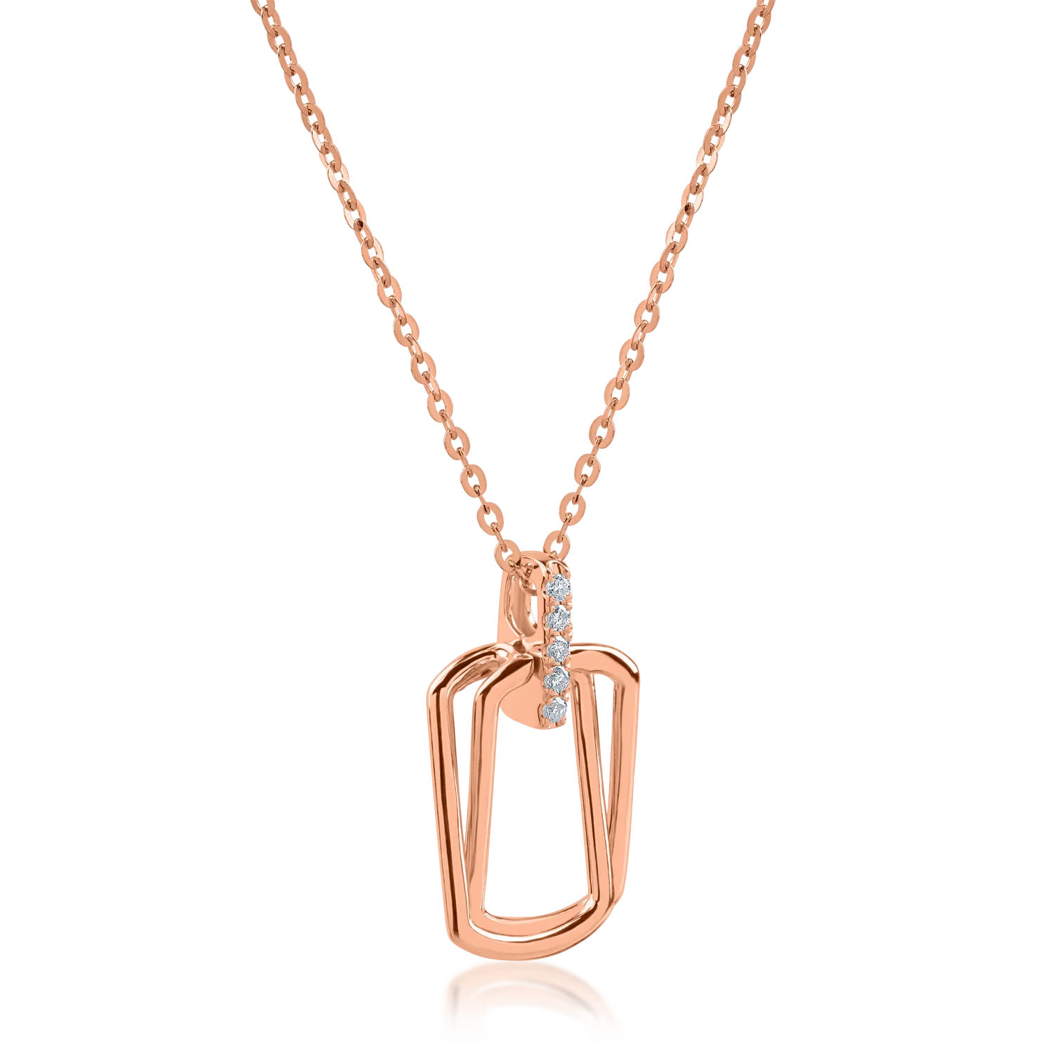 Lant cu pandantiv geometric din aur roz cu diamante de 0.025ct