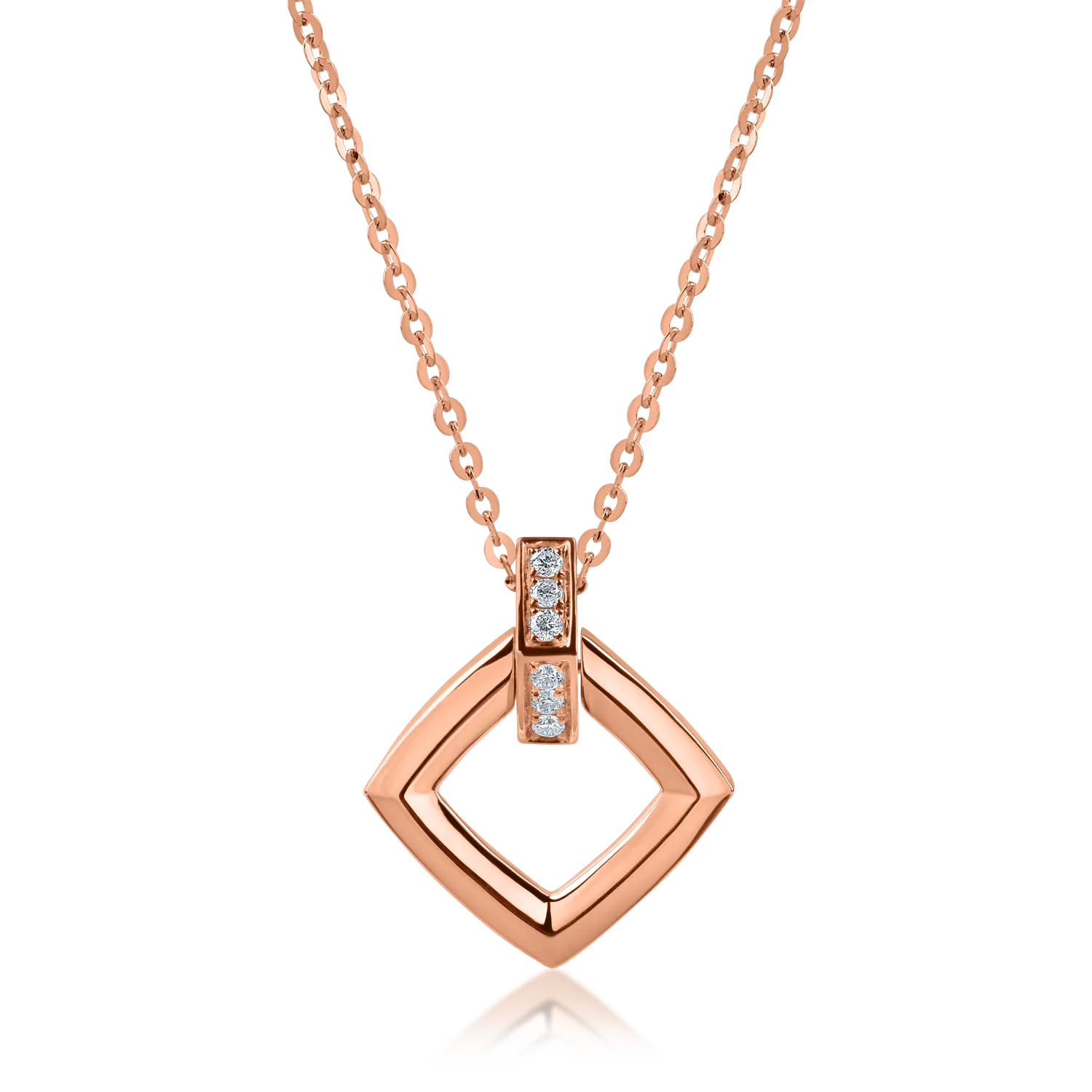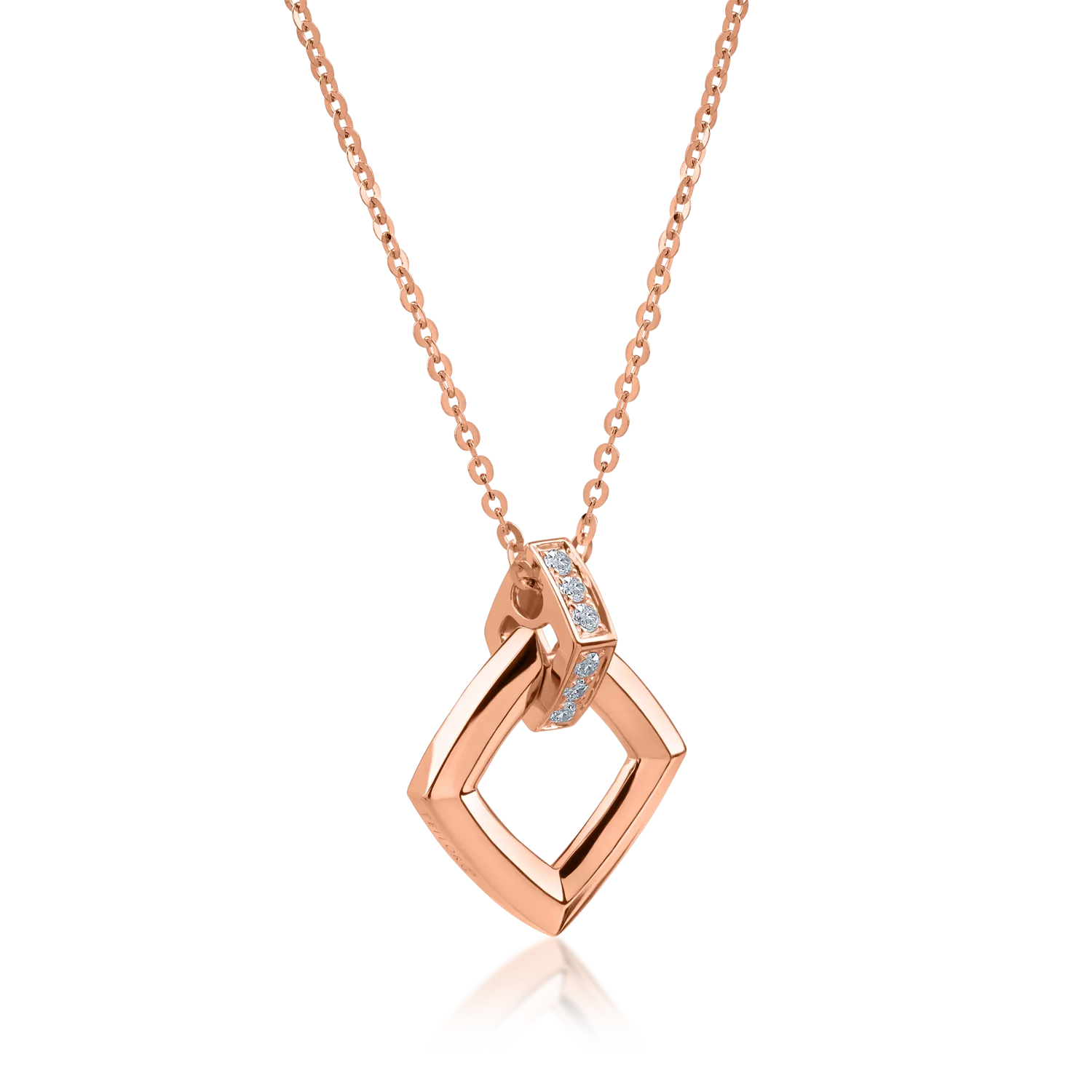 Lant cu pandantiv geometric din aur roz cu diamante de 0.046ct
