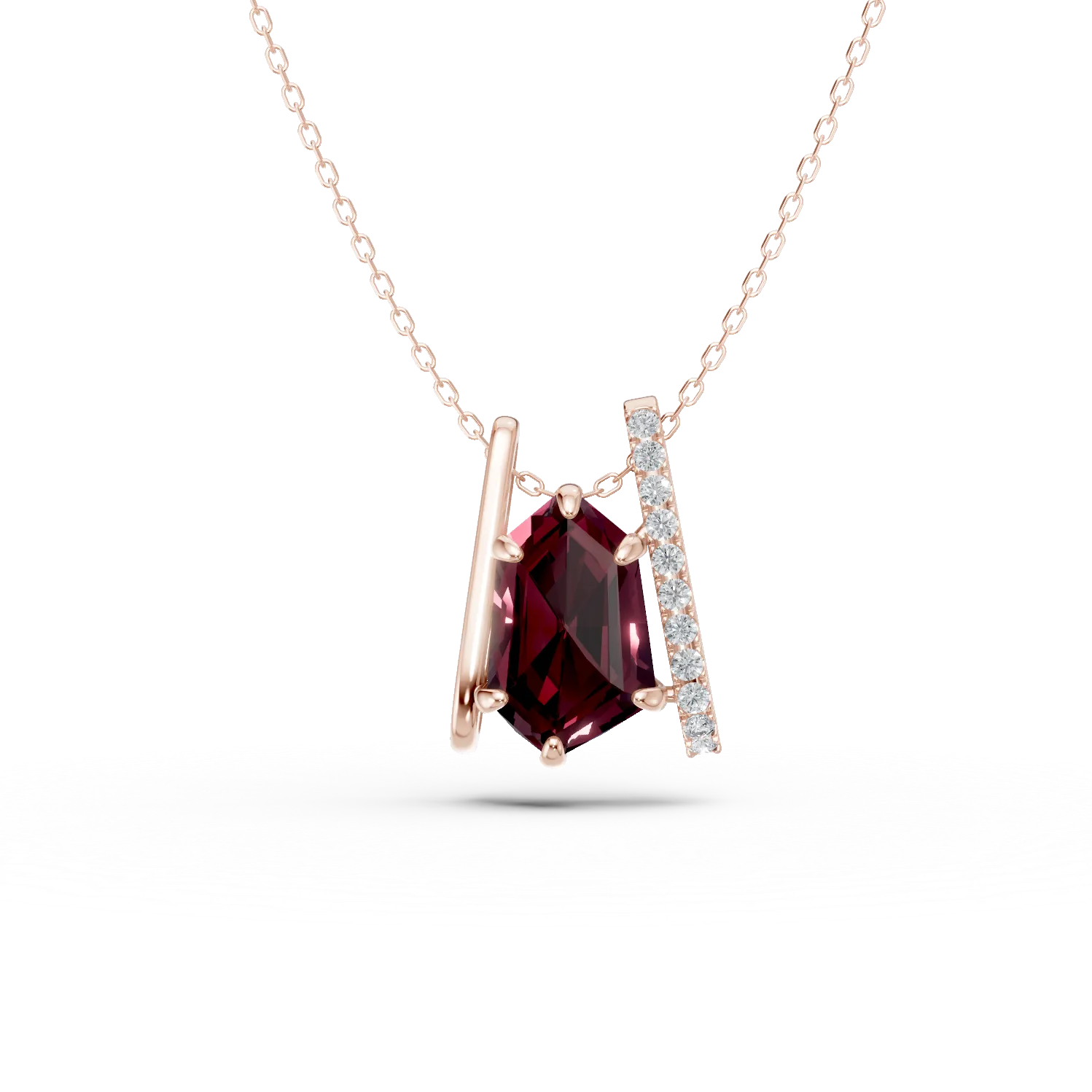 Lant cu pandantiv geometric din aur roz cu granat de 2.6ct si diamante de 0.1ct