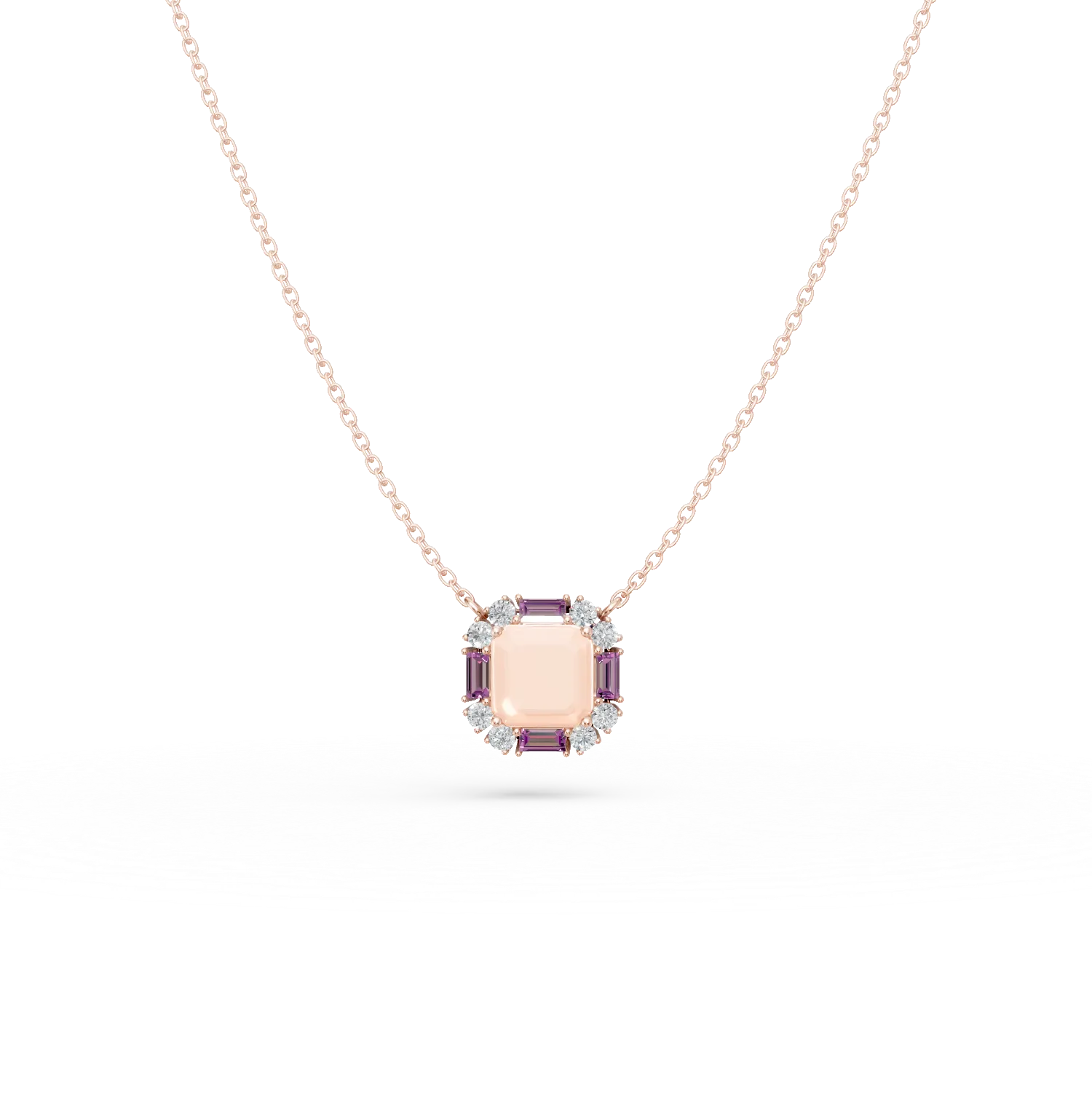 Lant cu pandantiv geometric din aur roz cu pietre pretioase si semipretioase de 2.8ct