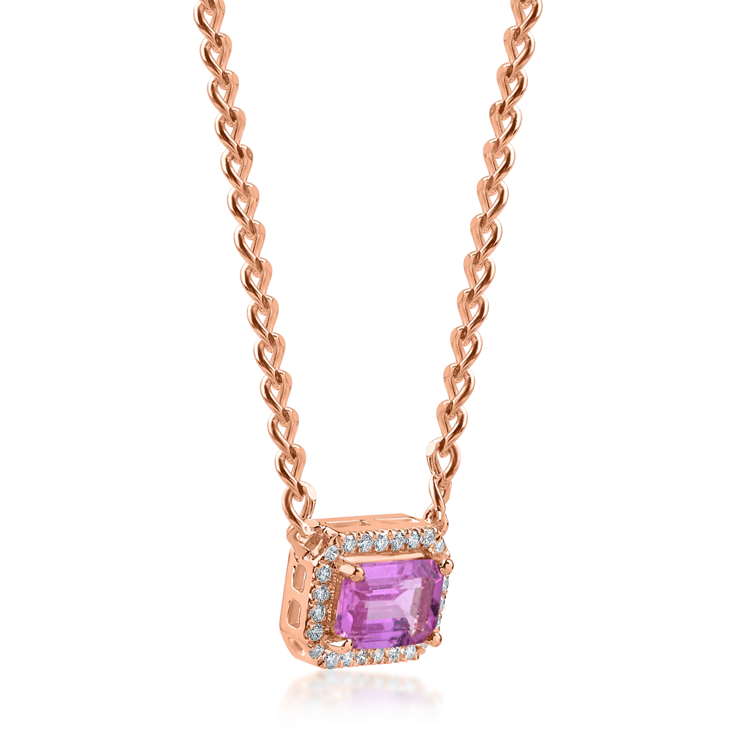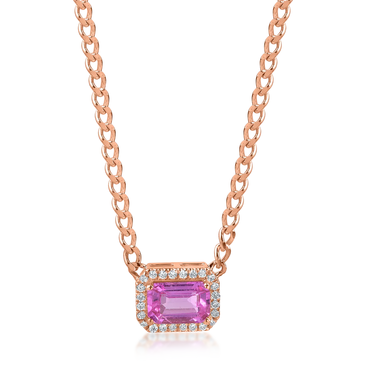 Lant cu pandantiv geometric din aur roz cu safir roz rectangular de 0.6ct si diamante de 0.06ct