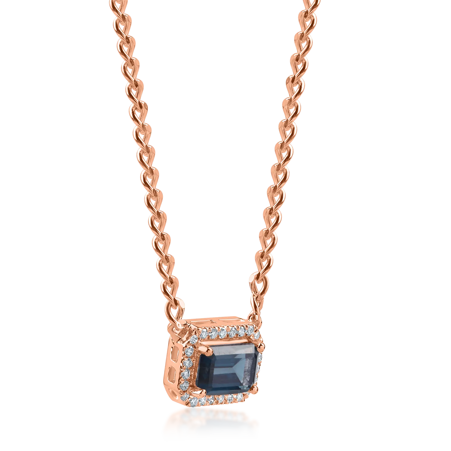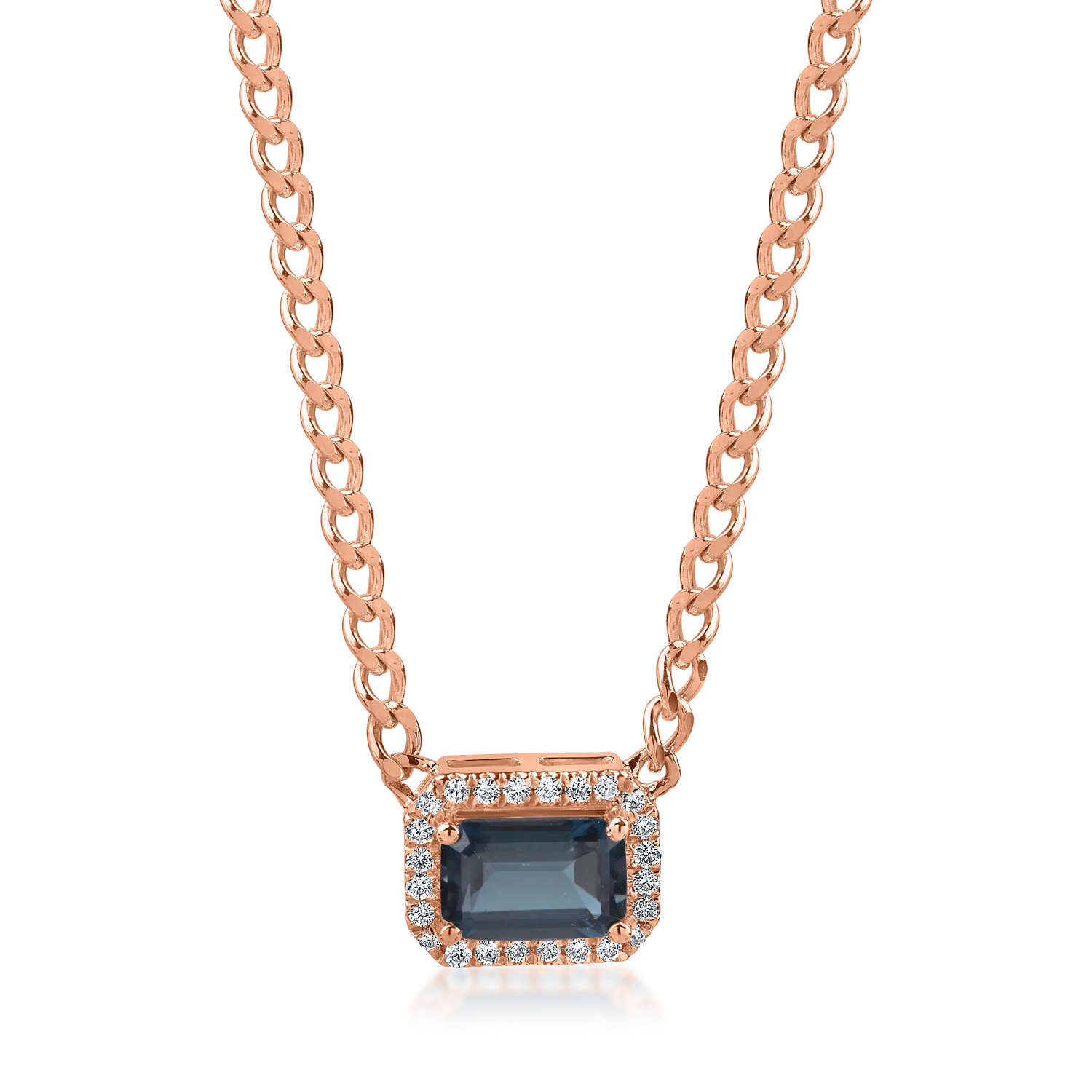 Lant cu pandantiv geometric din aur roz cu topaz london blue square de 0.7ct si diamante de 0.06ct
