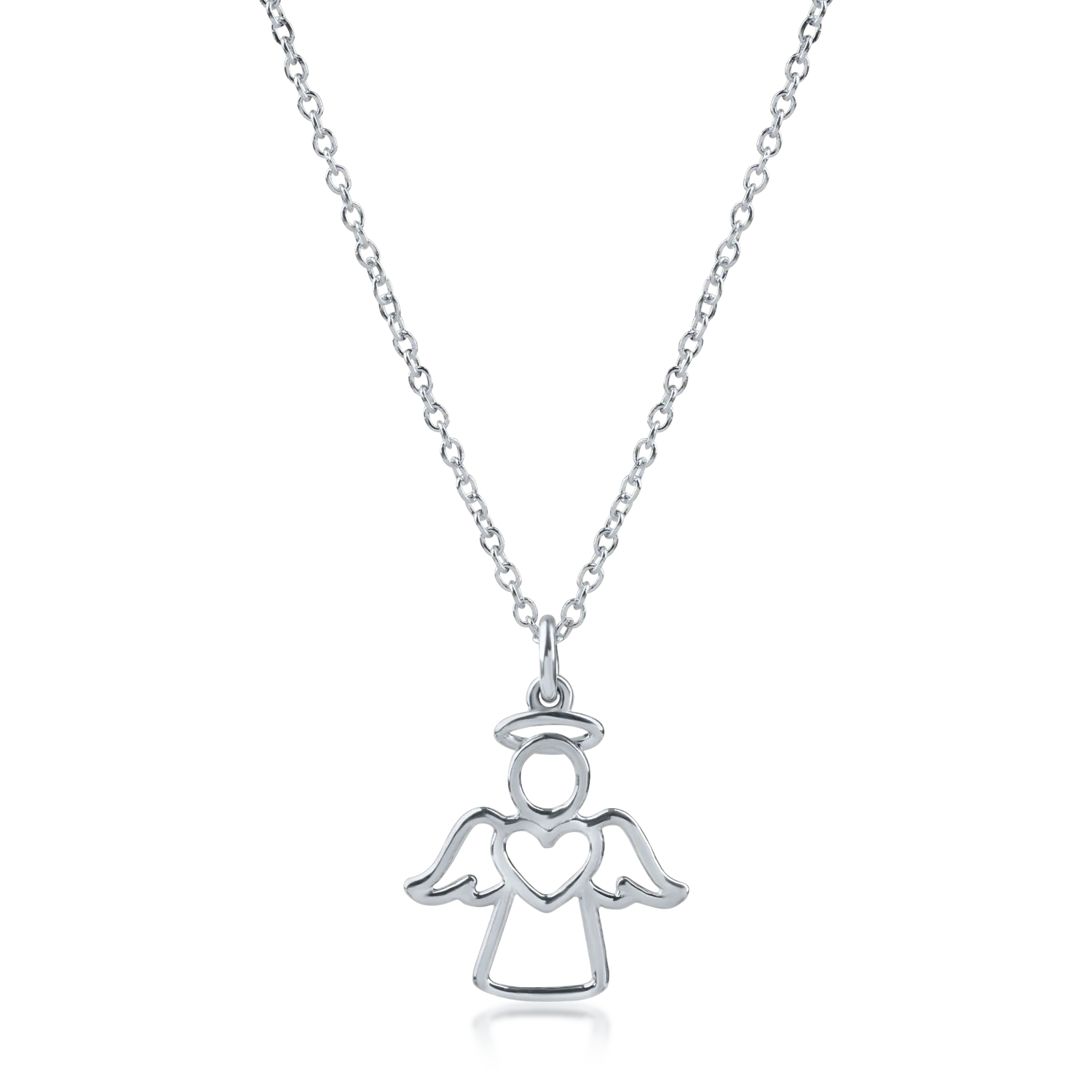 Fii fermecatoare fara prea mult efort. Aerul modern al acestui lant cu pandantiv inger din aur alb va fi detaliul final pentru un look fresh. Fii de neuitat cu TEILOR.