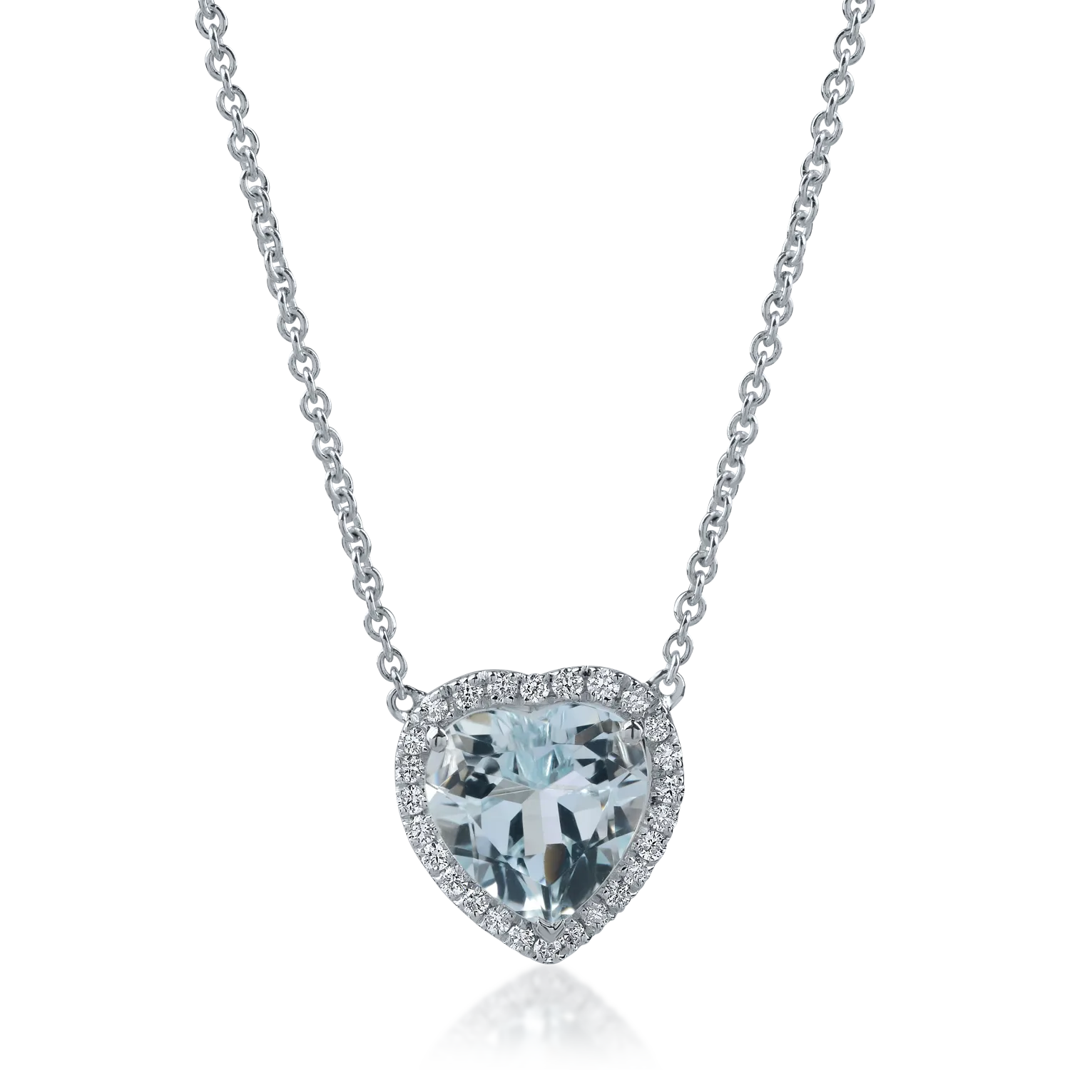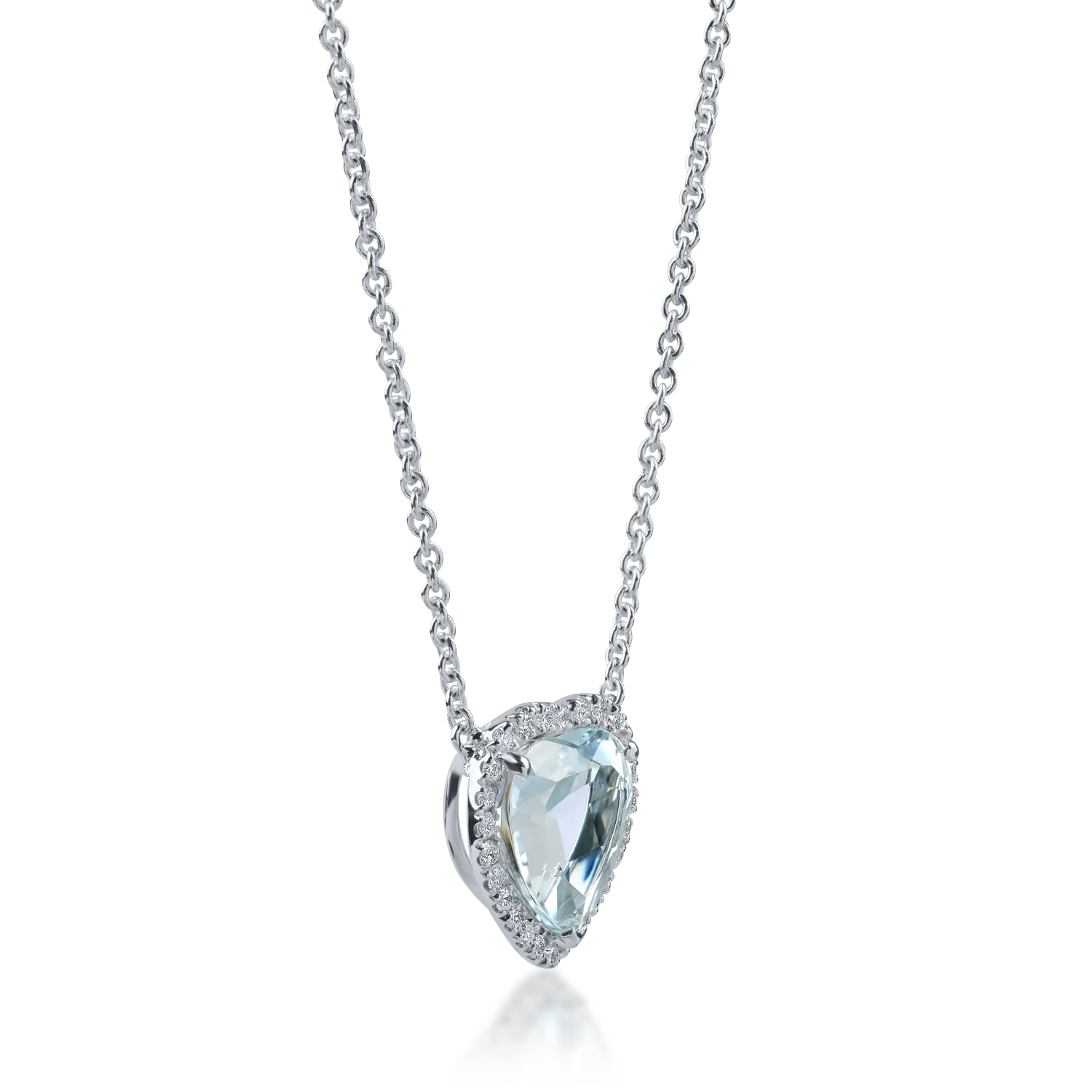 Lant cu pandantiv inima din aur alb cu acvamarin heart de 2.23ct si diamante de 0.18ct