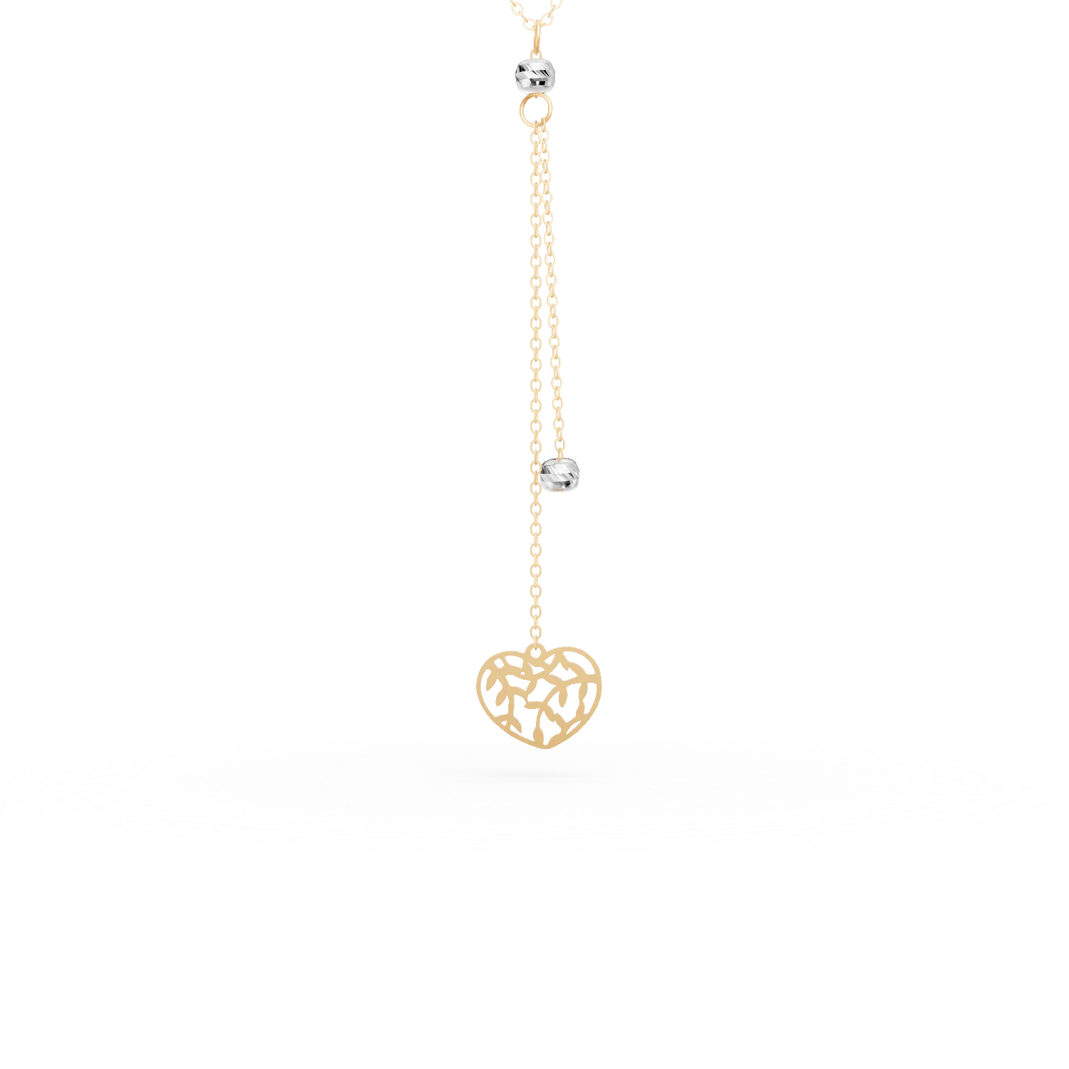 O tinuta eleganta si un mod de a o accesoriza ce intoarce privirile. Pentru femeile moderne, ce vor un design de neuitat, un astfel de lant cu pandantiv inima din aur alb-galben este accesoriul pereche. TEILOR – bijuterii create in numele frumusetii.
