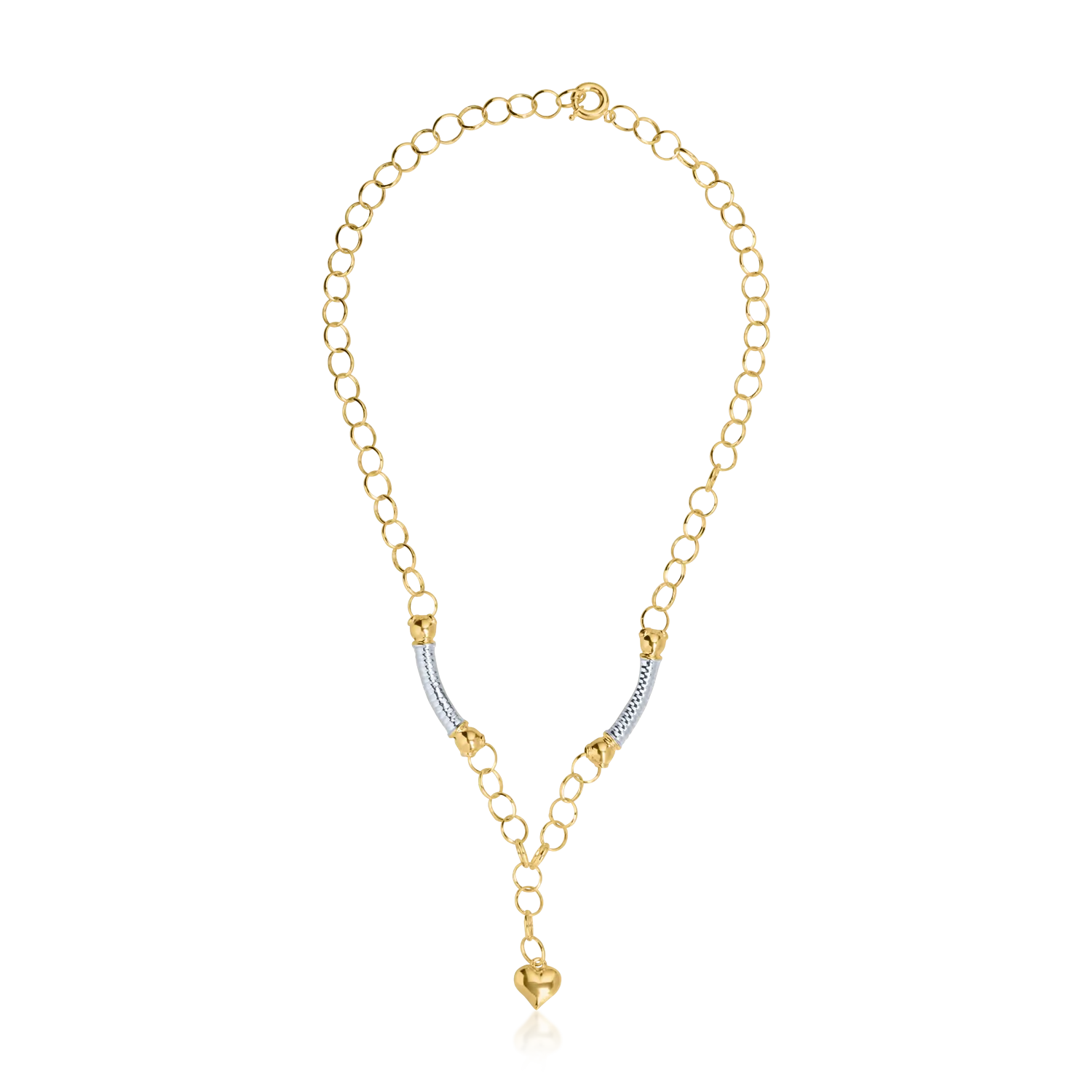 Fii fermecatoare fara prea mult efort. Detaliile atent lucrate fac din acest lant cu pandantiv inima din aur alb-galben accesoriul tau cheie pentru un look chic si memorabil. Descopera bijuteriile TEILOR si alege-ti piesa preferata.