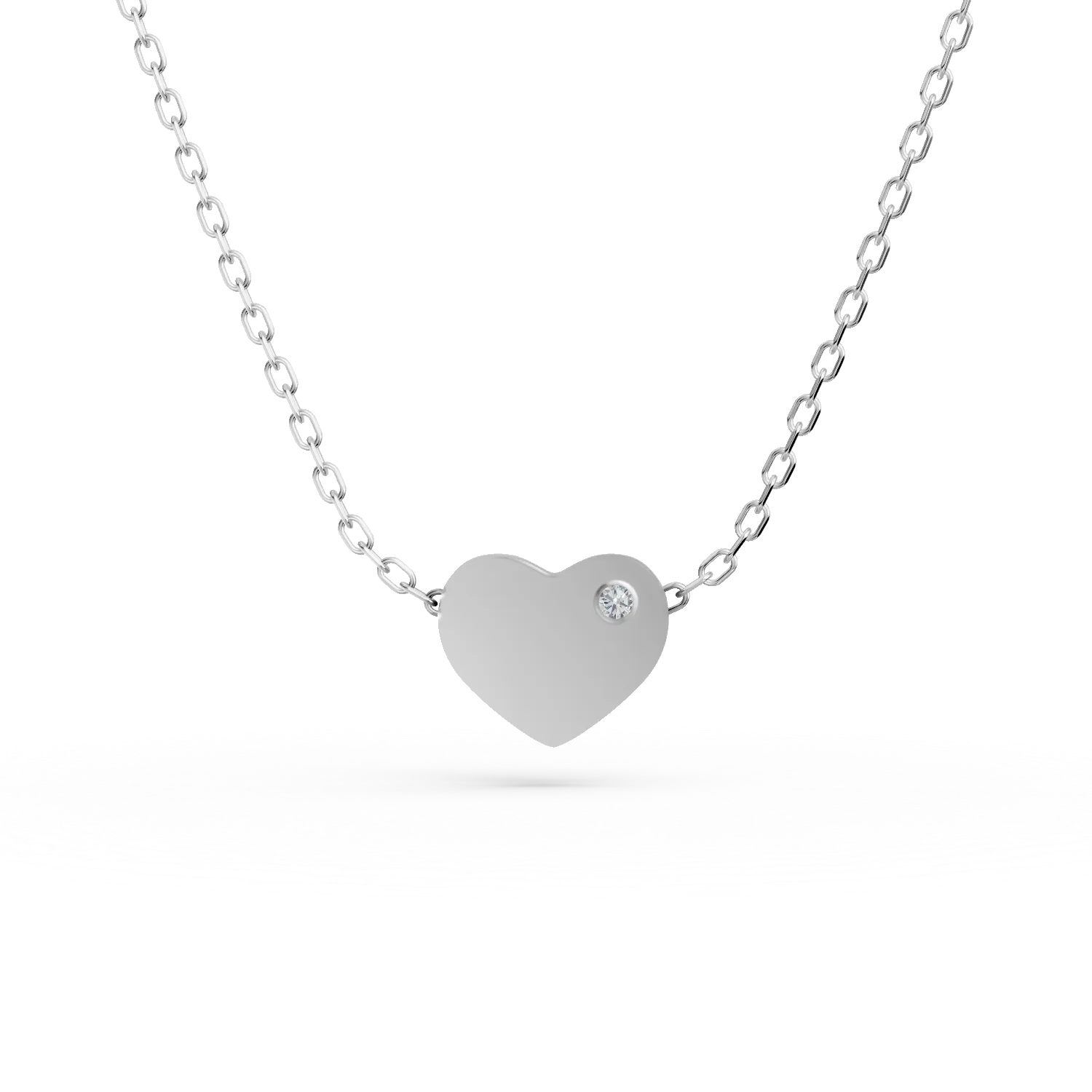 Lant cu pandantiv inima din aur alb si diamant de 0.005ct