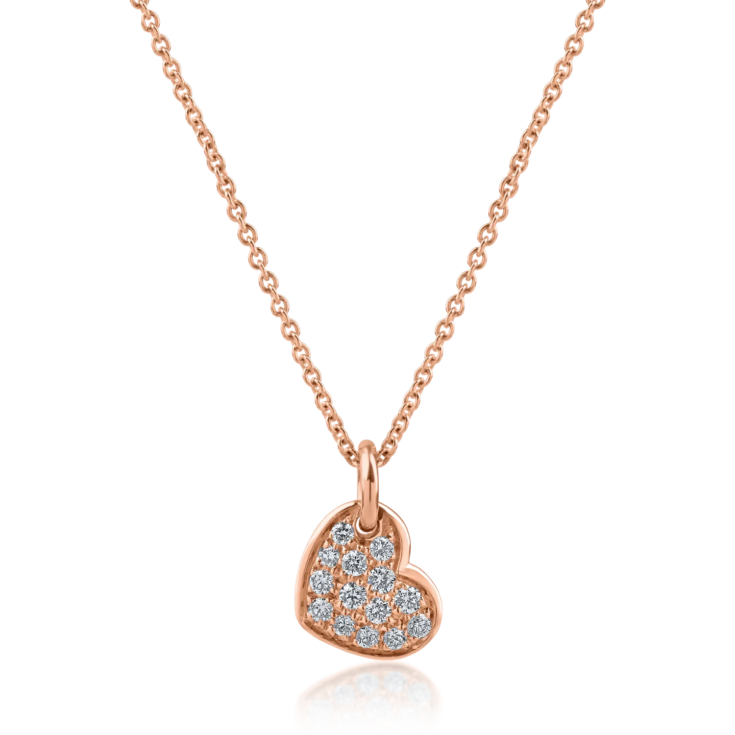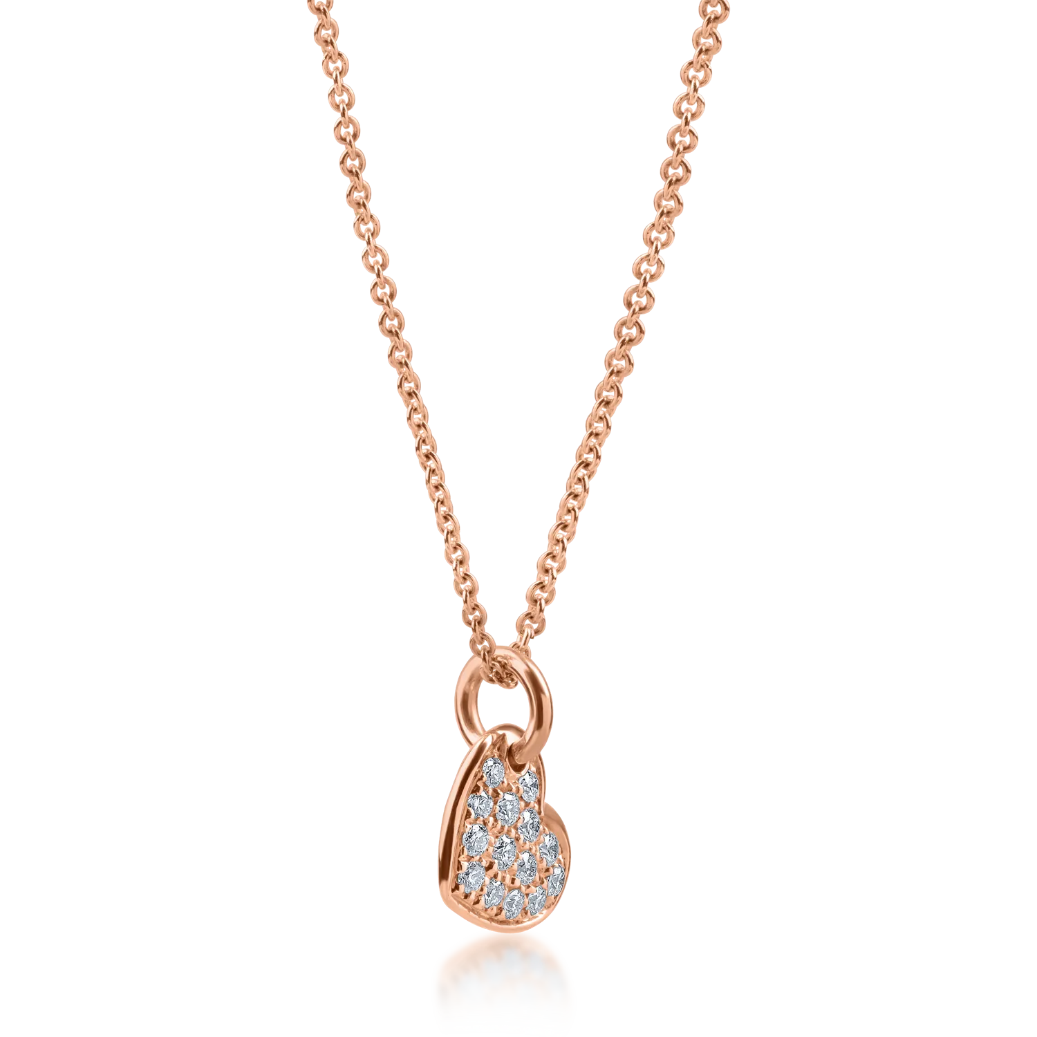 Lant cu pandantiv inima din aur roz cu diamante de 0.16ct