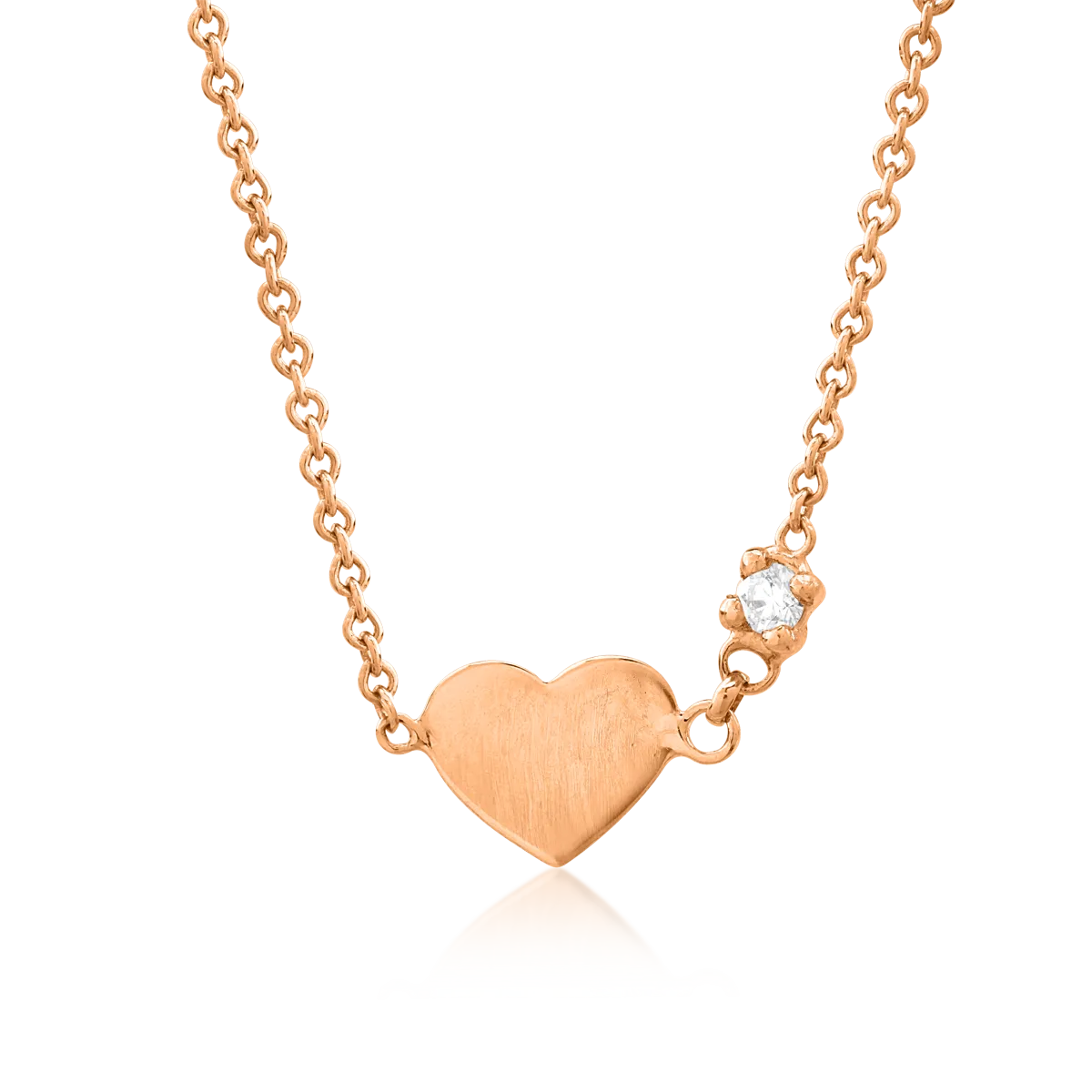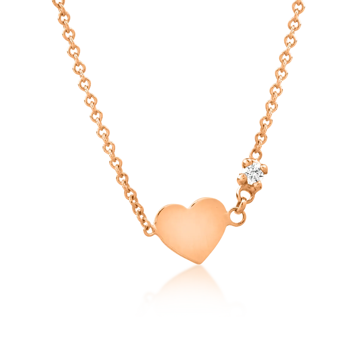Lant cu pandantiv inima pentru copii din aur roz cu diamant de 0.02ct