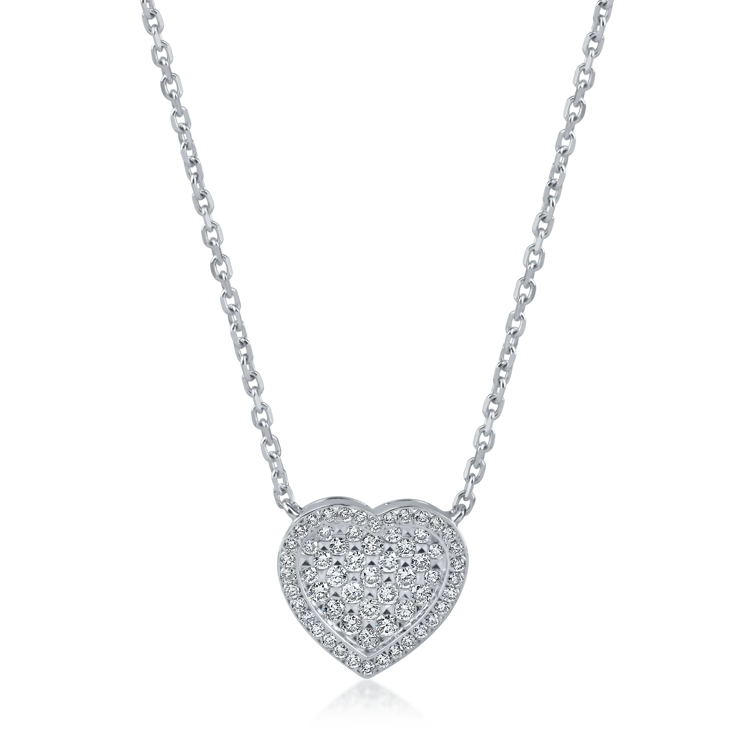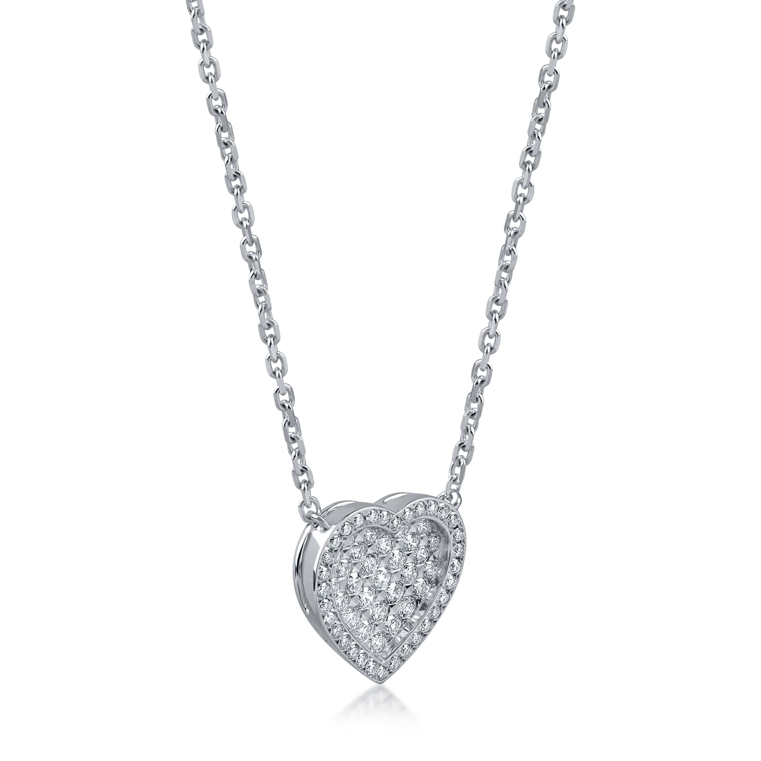 Lant cu pandantiv inimioara din aur alb cu diamante de 0.3ct