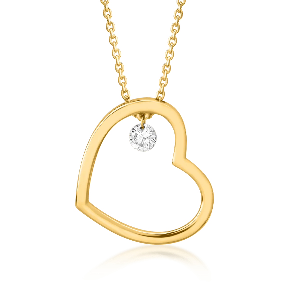 Lant cu pandantiv inimioara din aur galben cu diamant de 0.15ct