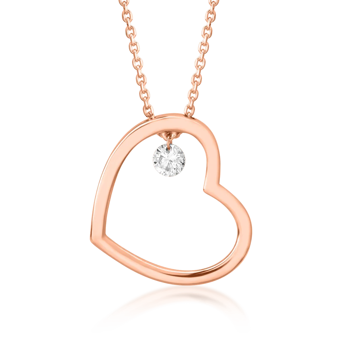 Lant cu pandantiv inimioara din aur roz cu diamant de 0.15ct