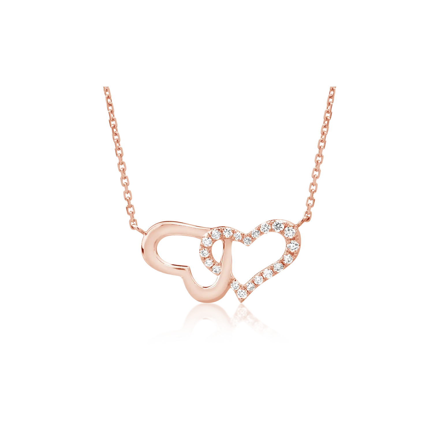 Lant cu pandantiv inimioare din aur roz cu diamante de 0.052ct