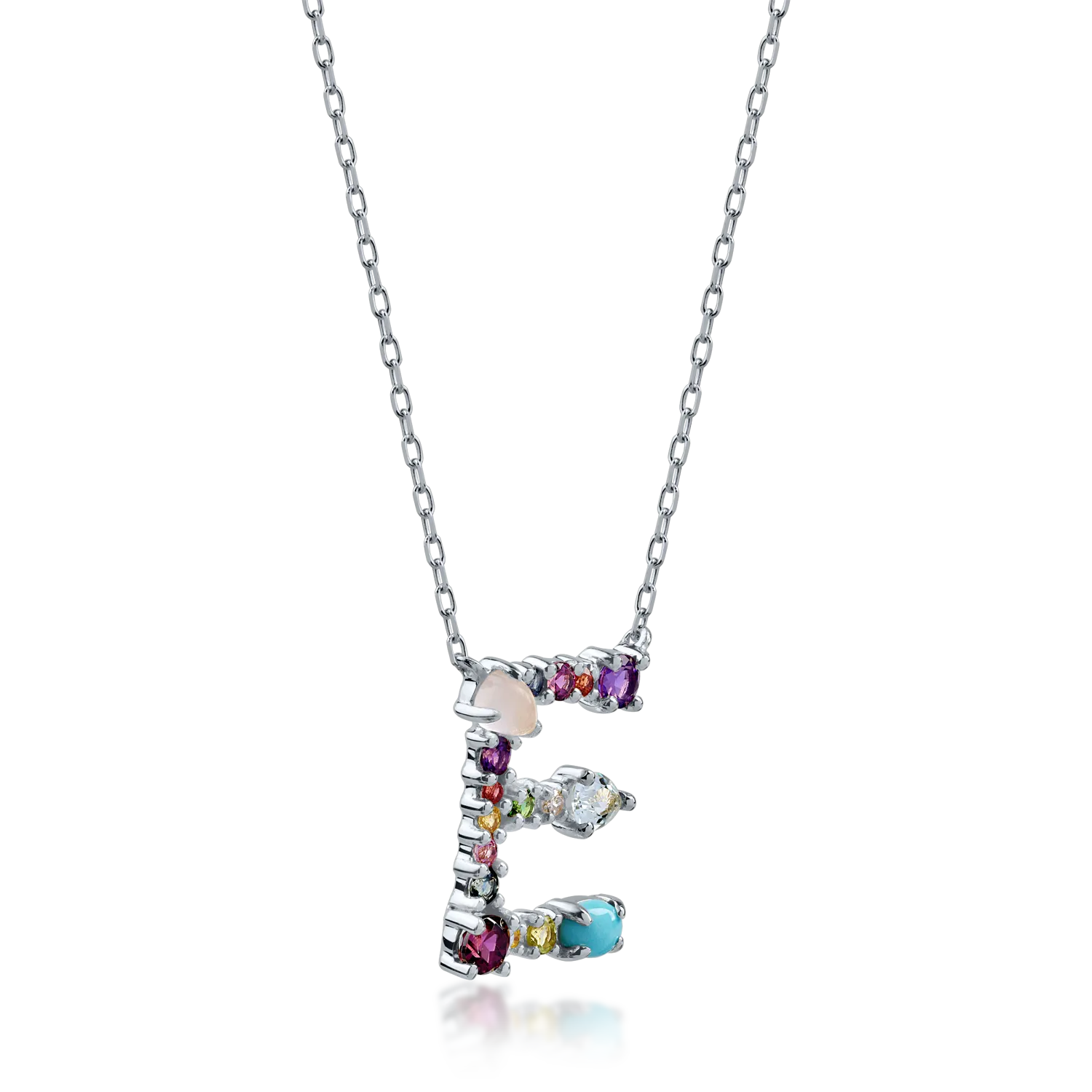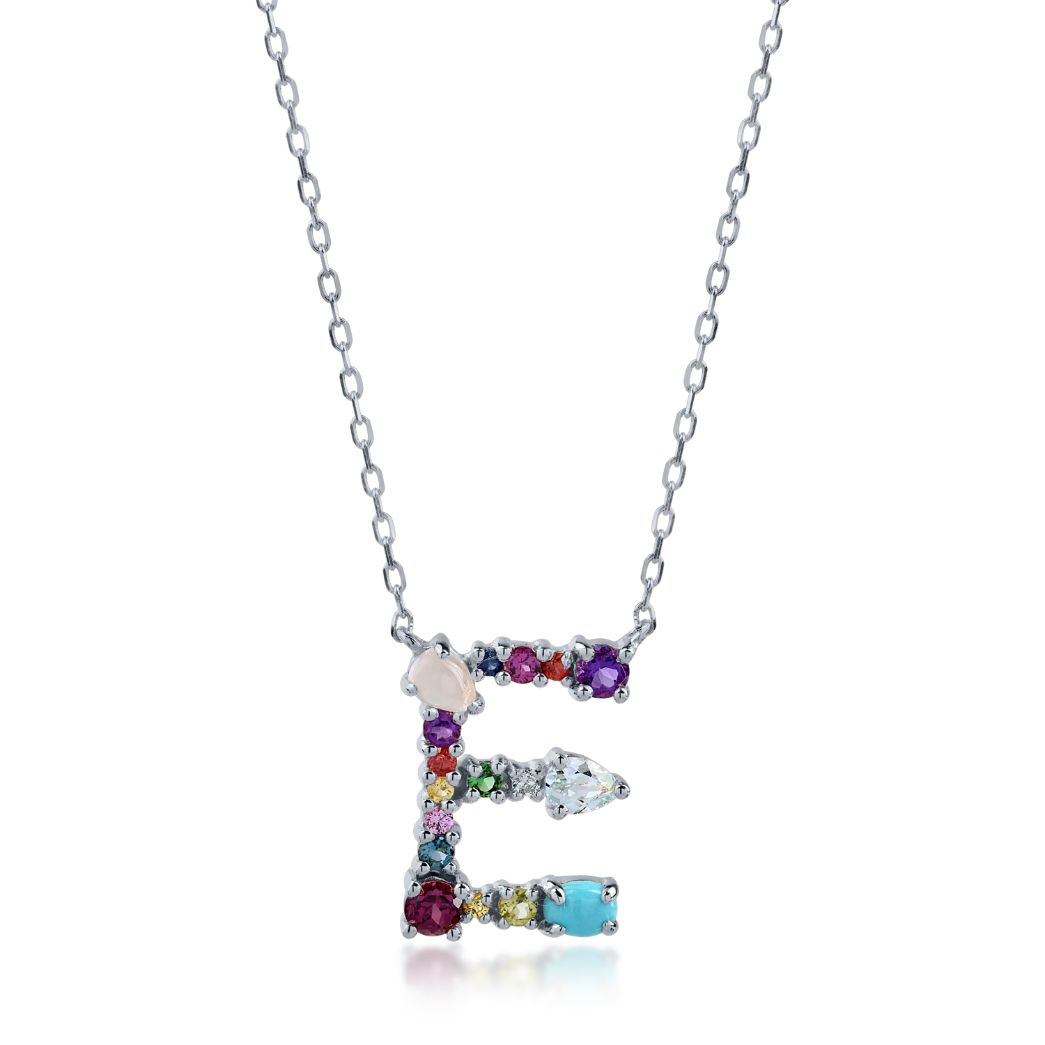 Lant cu pandantiv initiala E din aur alb cu pietre pretioase si semipretioase de 1.1ct