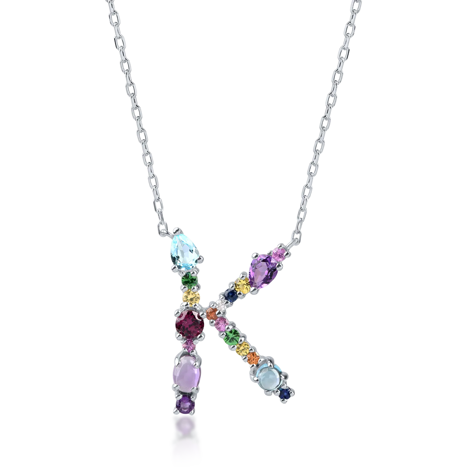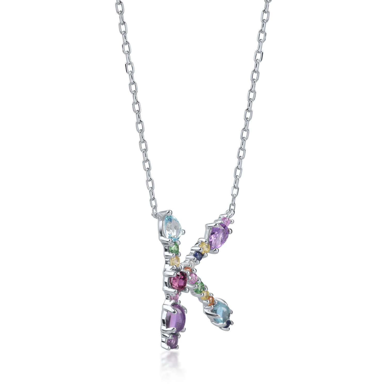 Lant cu pandantiv initiala K din aur alb cu pietre pretioase si semipretioase de 2.2ct