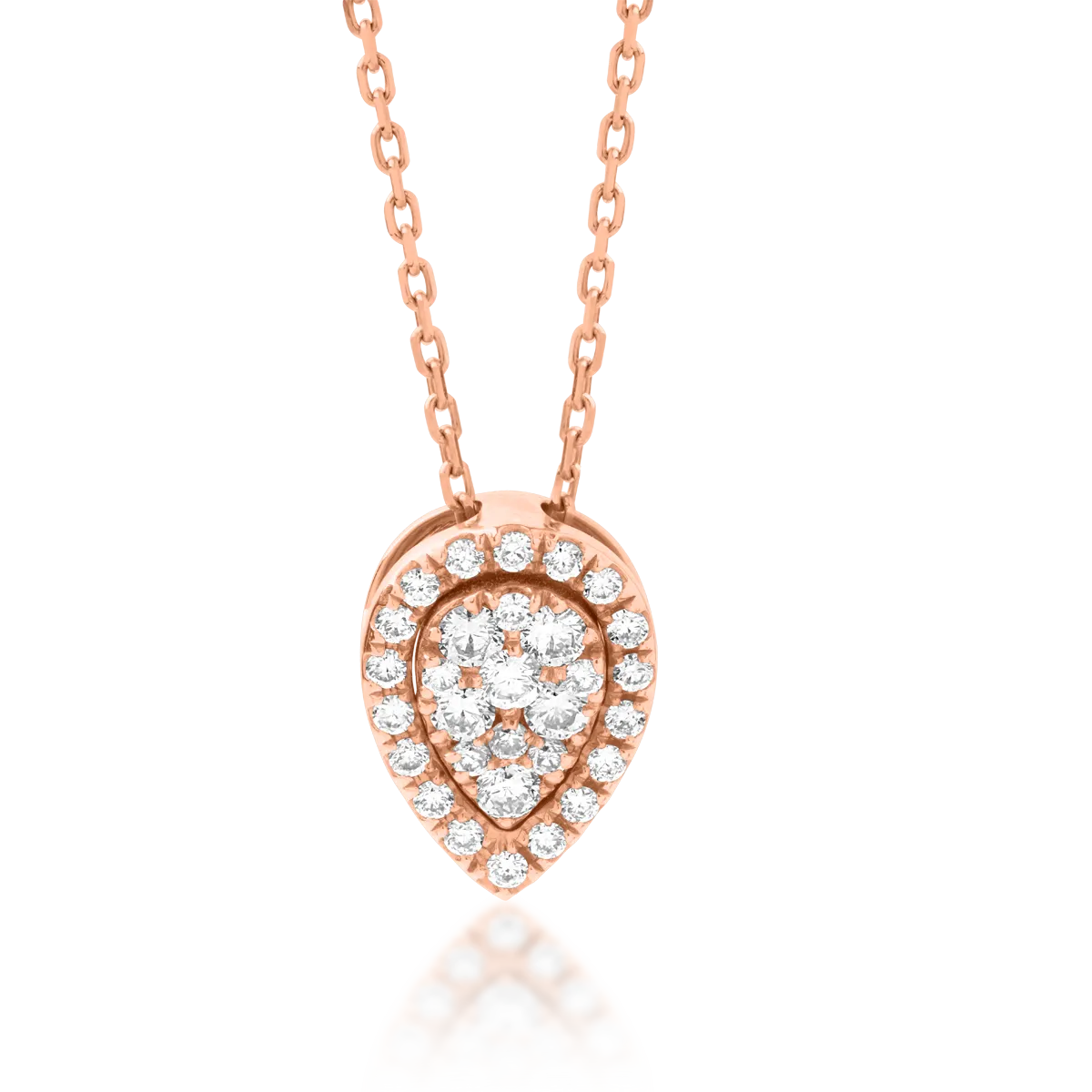 Lant cu pandantiv lacrima din aur roz cu diamante de 0.292ct