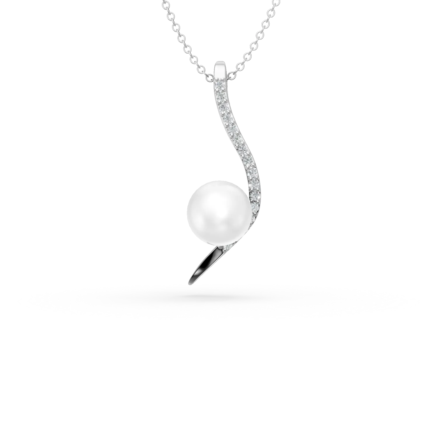 Lant cu pandantiv minimalist si perla sintetica din aur alb