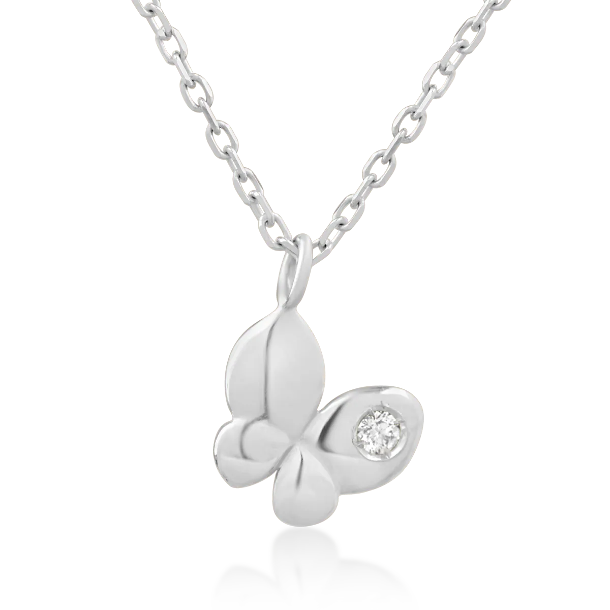 Lant cu pandantiv pentru copii cu fluturas din aur alb cu diamant de 0.02ct