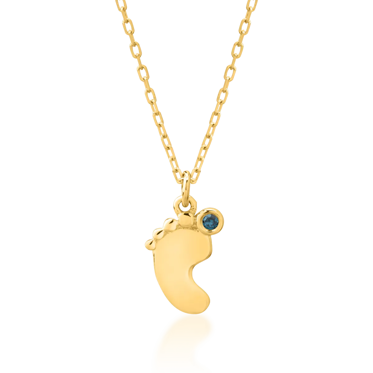 Lant cu pandantiv piciorus pentru copii din aur galben cu diamant albastru de 0.008ct