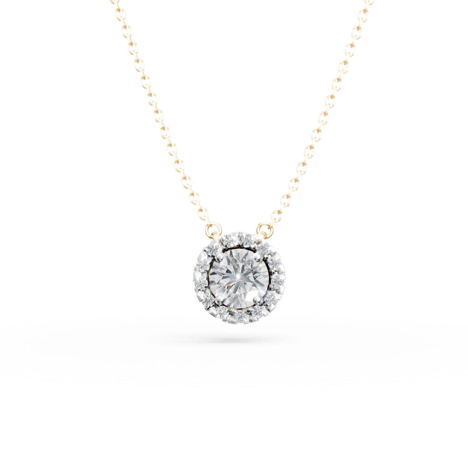 Lant cu pandantiv rotund din aur galben cu diamante de 0.6ct create in laborator