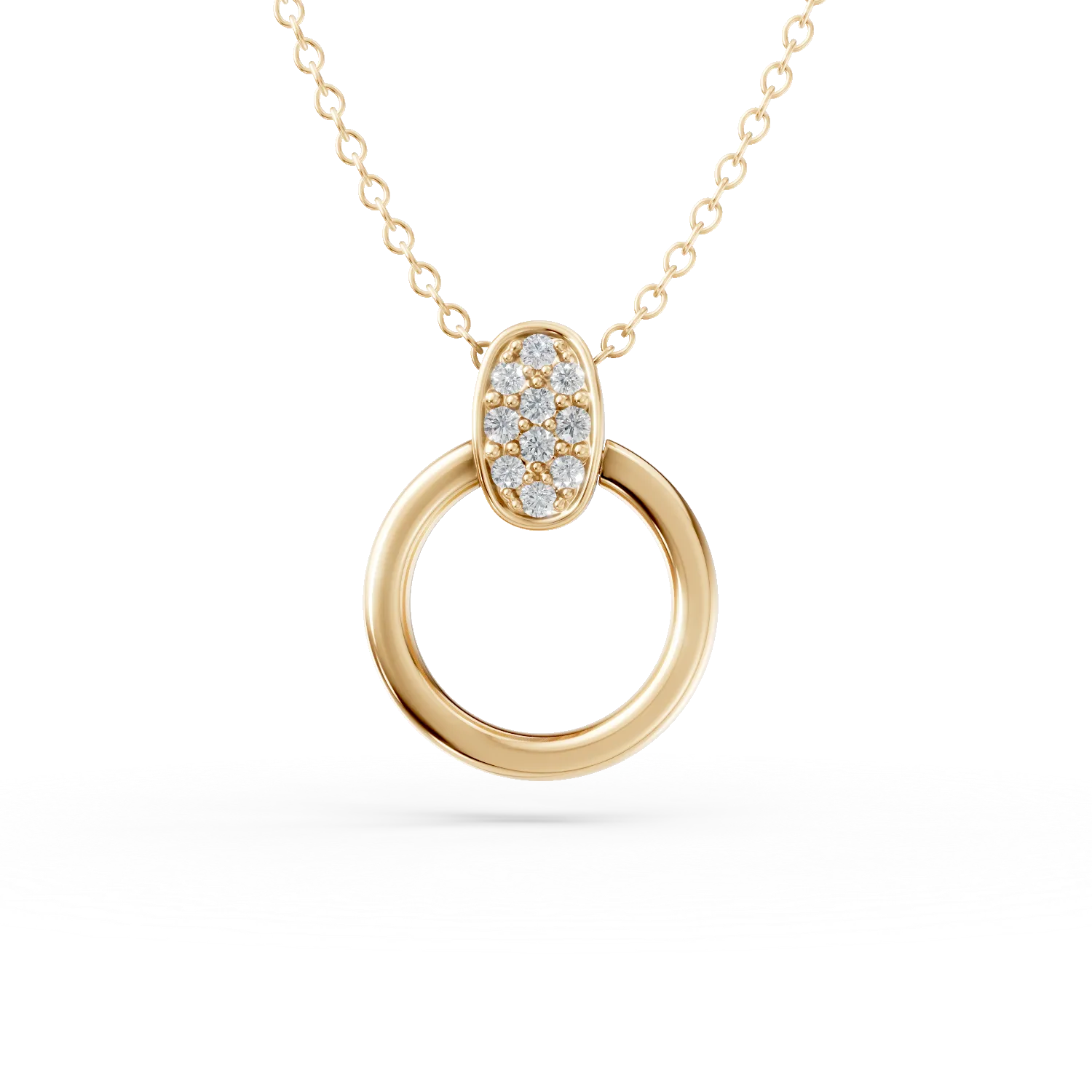 Lant cu pandantiv rotund din aur galben cu zirconii