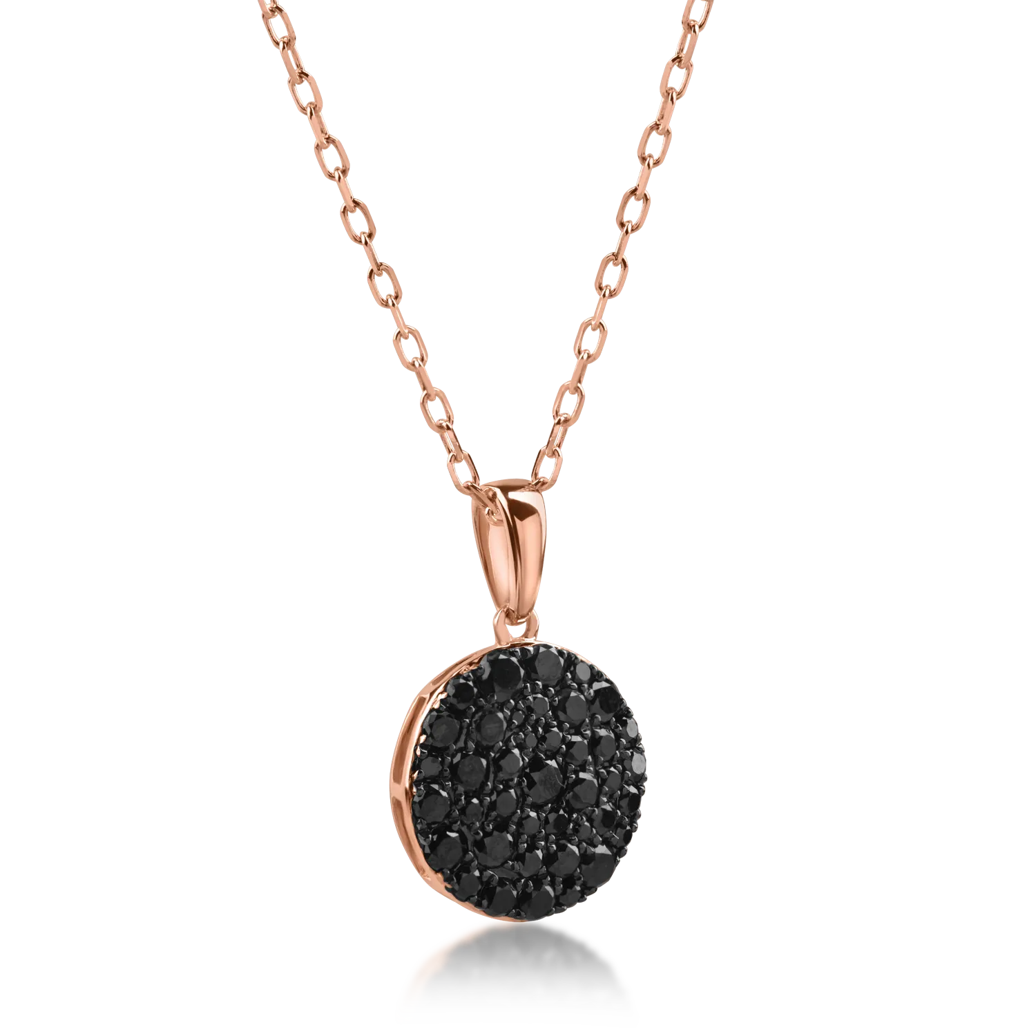 Lant cu pandantiv rotund din aur roz cu diamante negre de 0.3ct