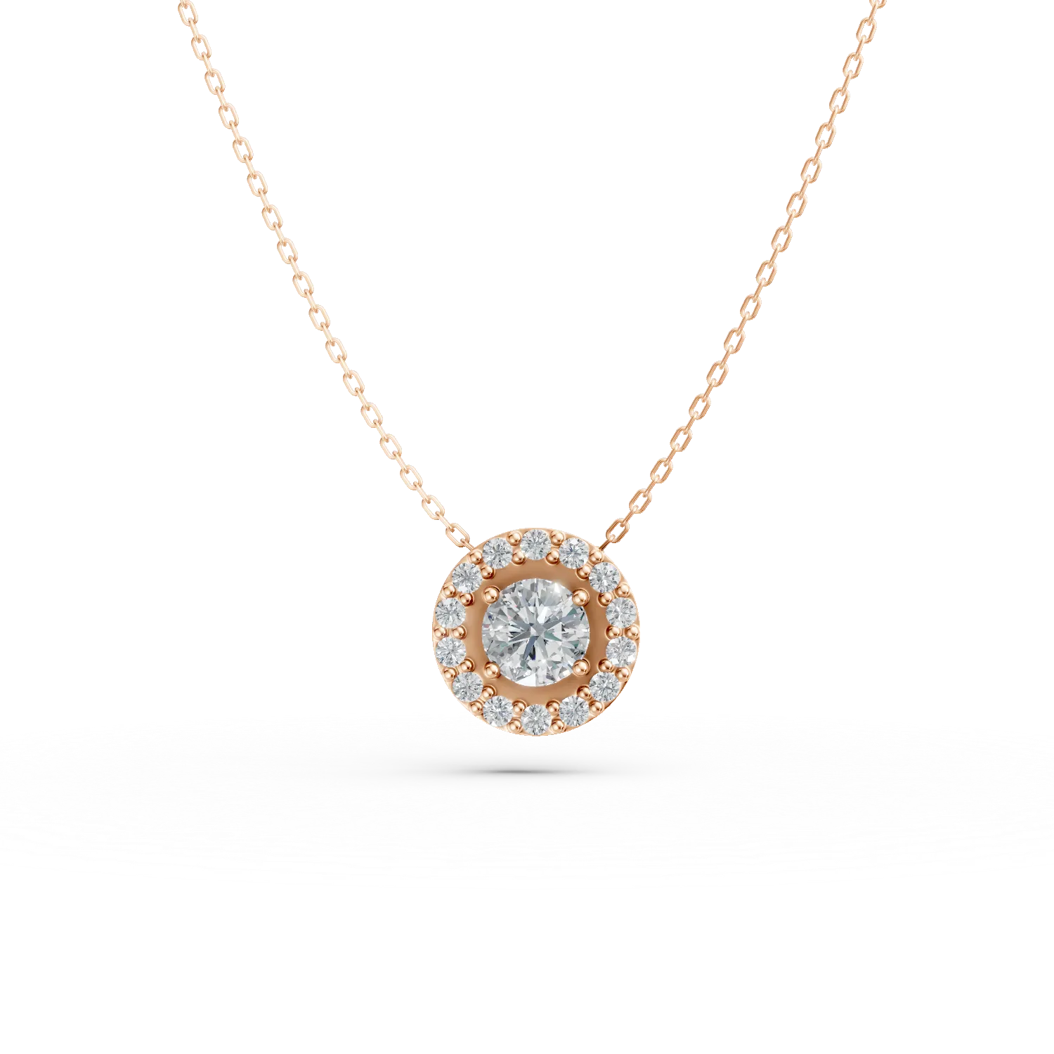 Lant cu pandantiv rotund din aur roz cu zirconii