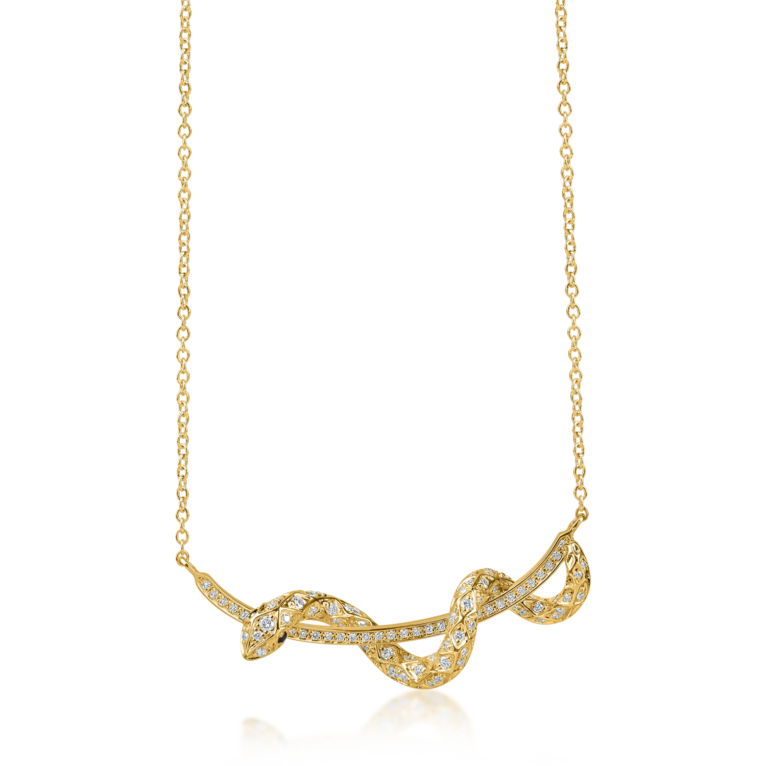 Lant cu pandantiv sarpe din aur galben cu diamante incolore si negre de 0.5ct