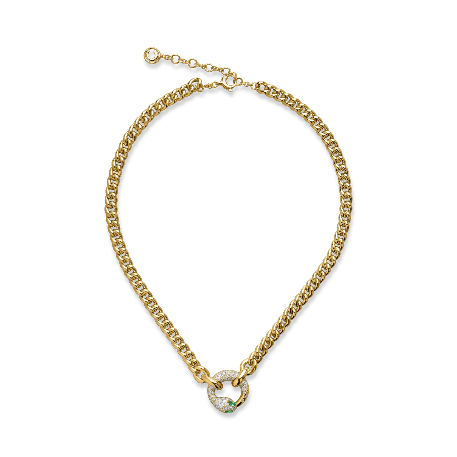 Lant cu pandantiv sarpe din aur galben cu smaralde marquise de 0.18ct si diamante de 1.42ct