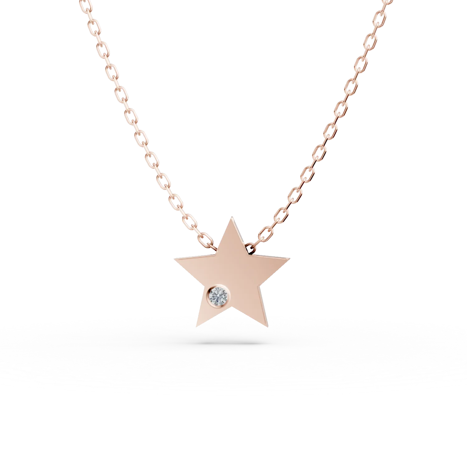 Lant cu pandantiv stea din aur roz si diamant de 0.005ct