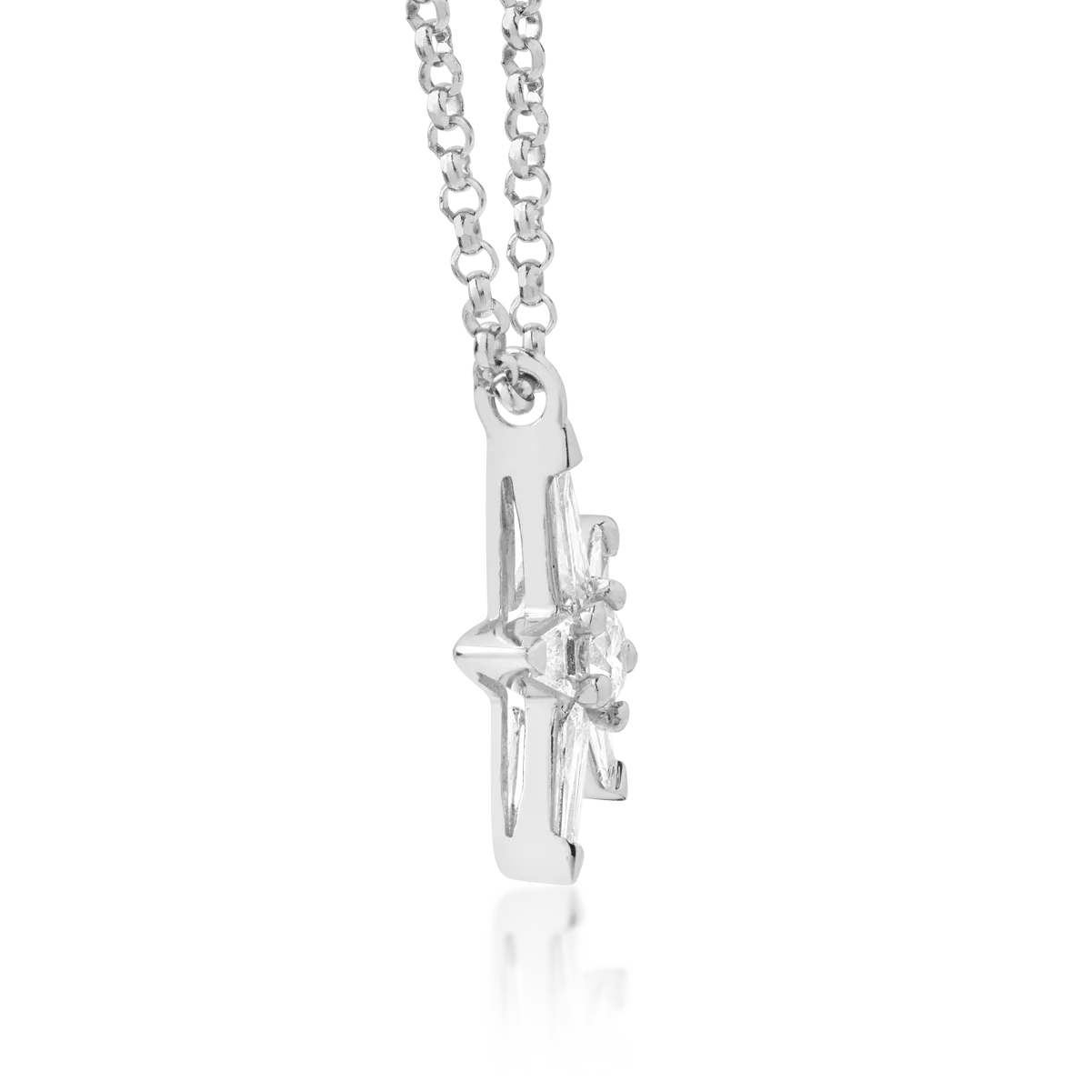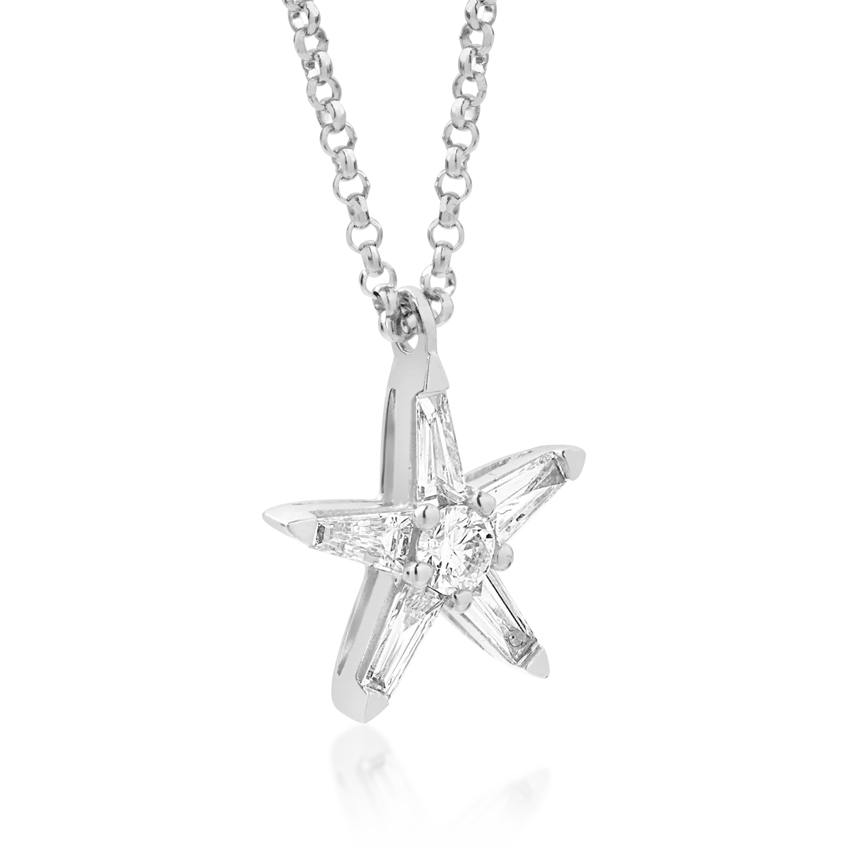 Lant cu pandantiv steluta din aur alb cu diamante baguette si rotunde de 0.27ct