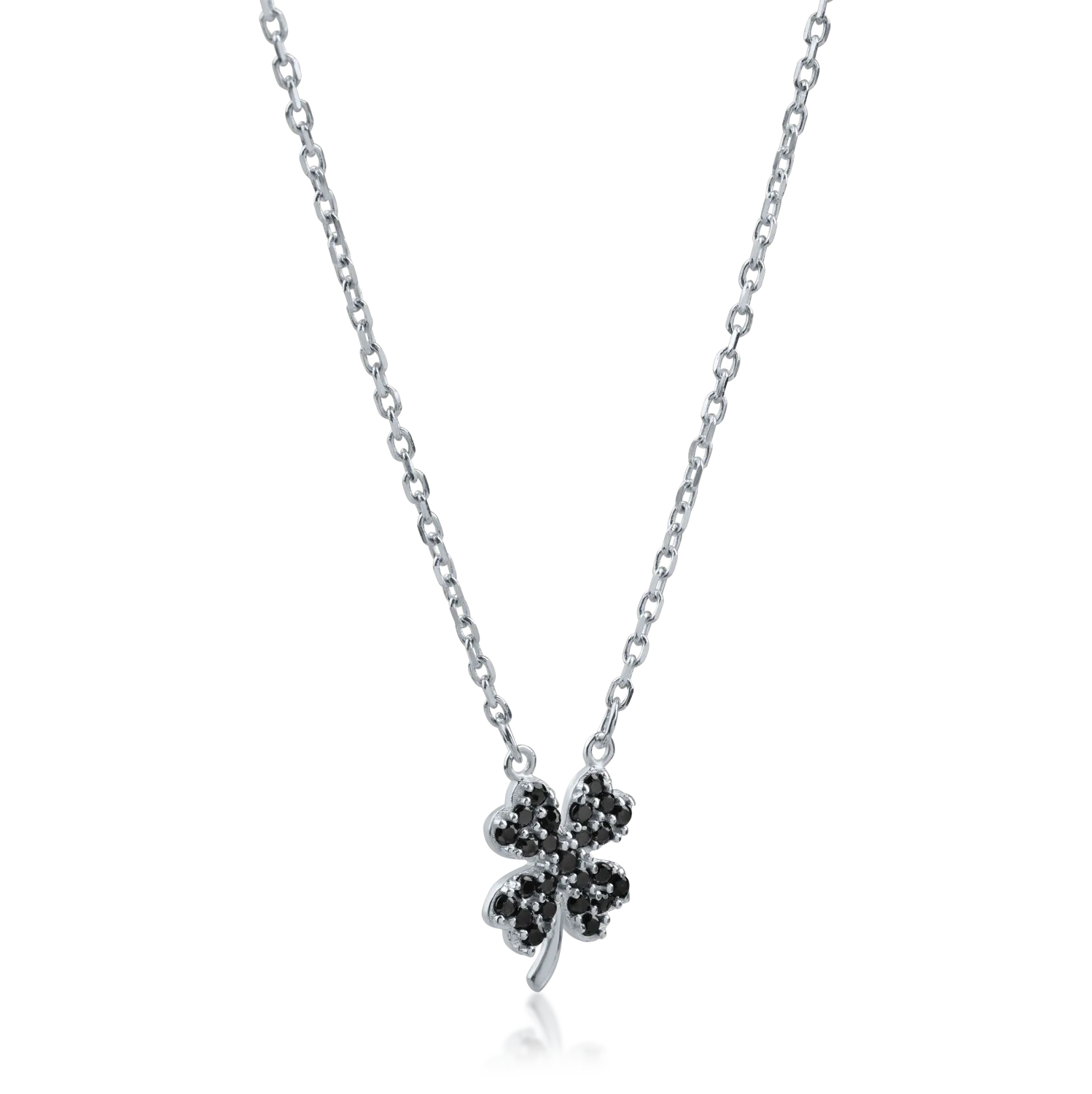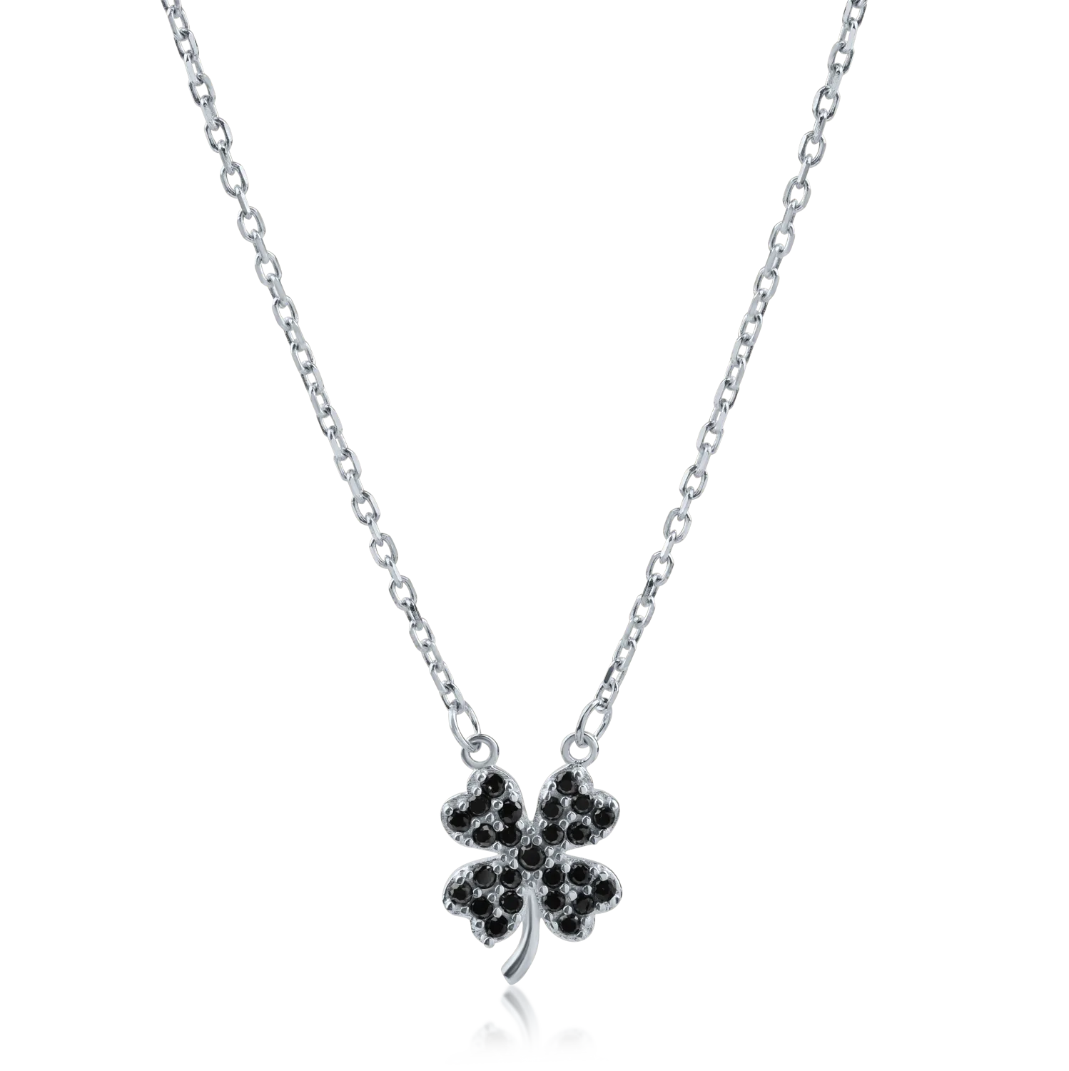Lant cu pandantiv trifoi din aur alb cu zirconiii negre