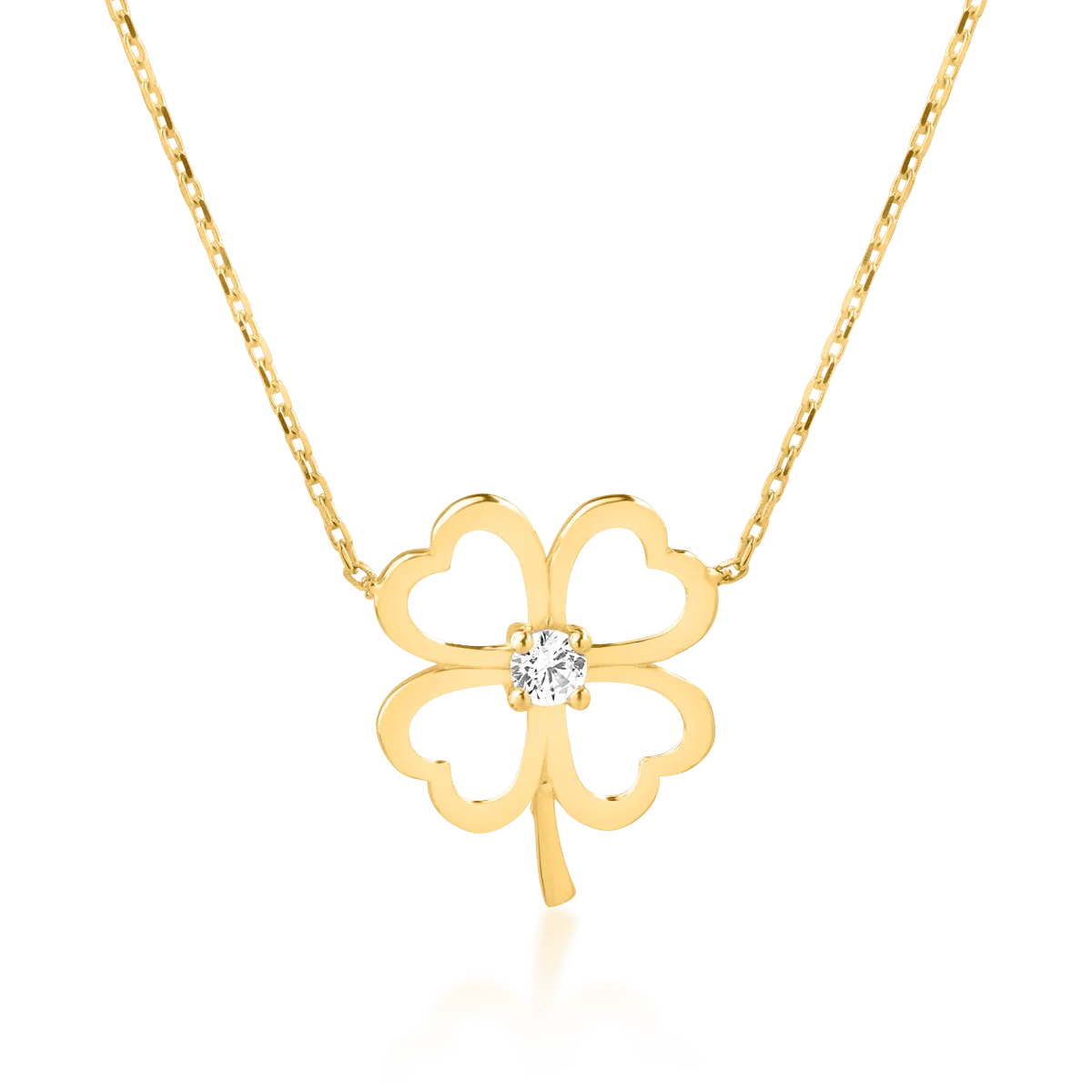 Dezvaluie-ti stilul prin piese memorabile. Detaliile atent lucrate fac din acest lant cu pandantiv trifoi din aur galben accesoriul tau cheie pentru un look chic. TEILOR – bijuterii create in numele frumusetii.