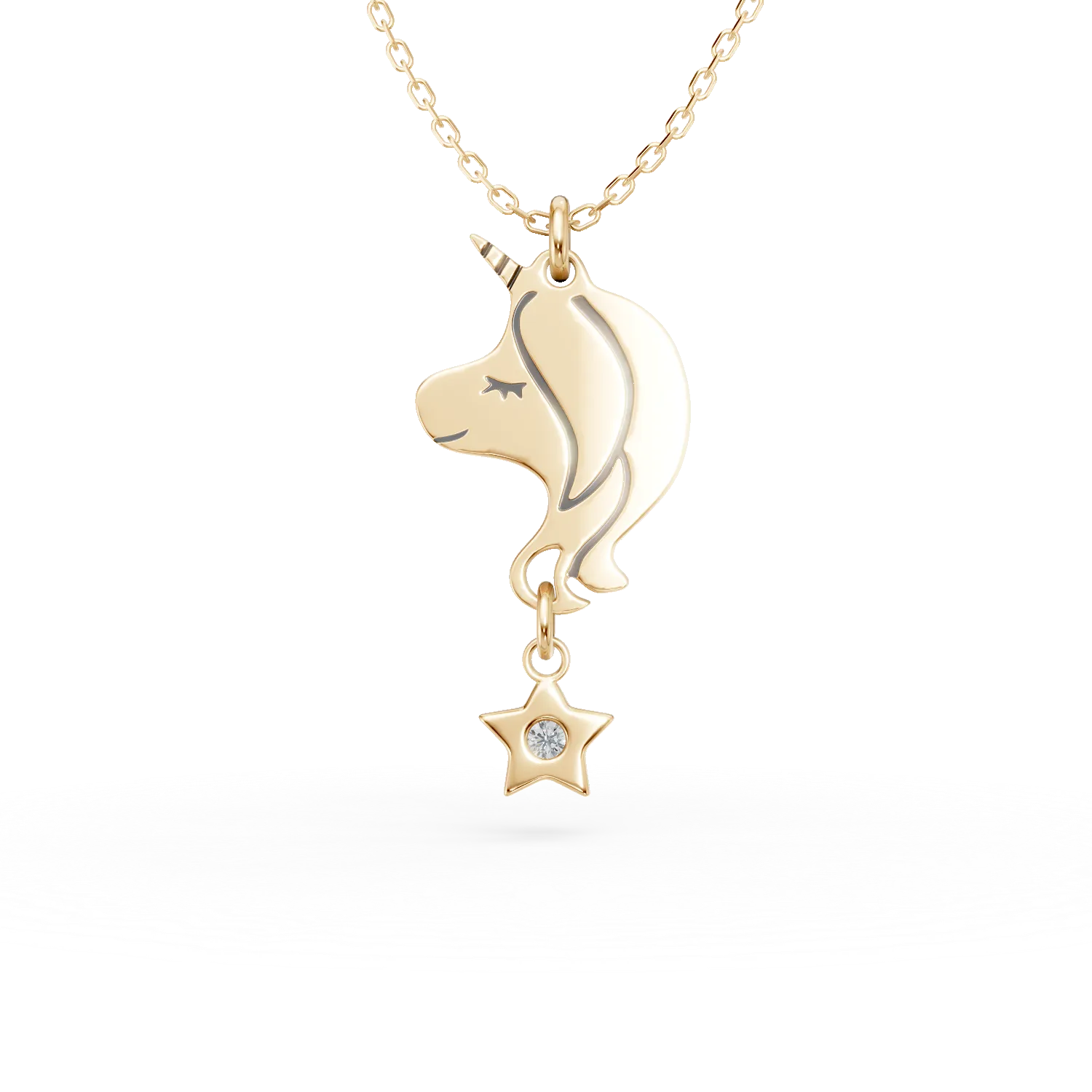 Lant cu pandantiv unicorn din aur galben cu diamant de 0.01ct pentru copii