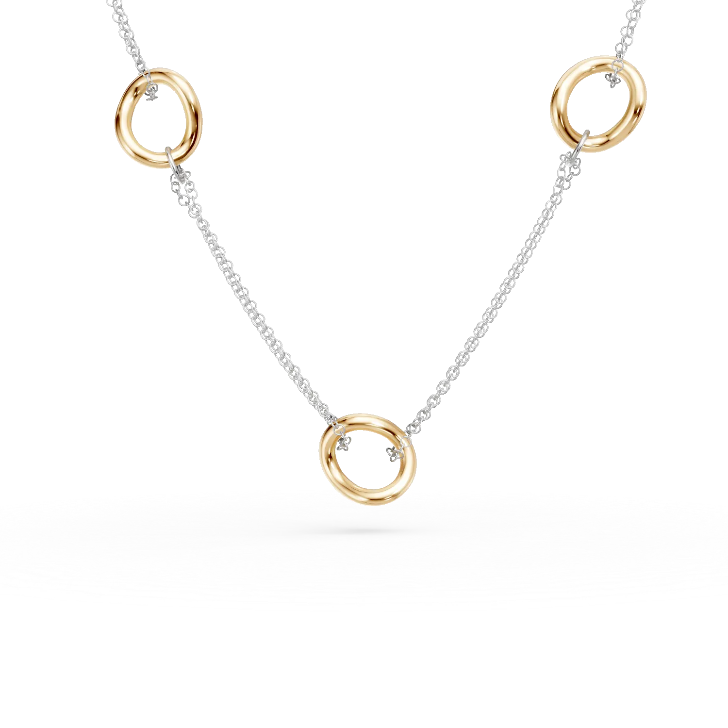Ofera-ti un strop de stralucire cu acest lant cu pandantive din aur alb-galben, perfect pentru a adauga un accent deosebit oricarei tinute. Este bijuteria ideala pentru a celebra fiecare clipa. TEILOR – bijuterii ce redefineasc frumusetea!