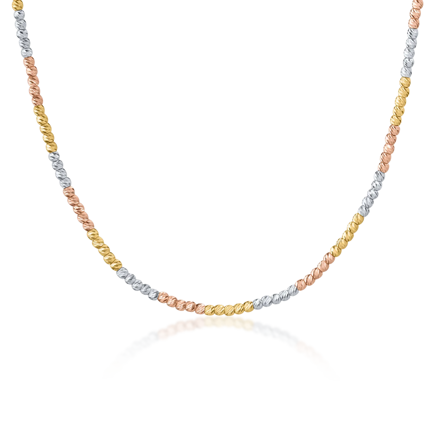 Fii fermecatoare fara prea mult efort. Detaliile atent lucrate fac din acest lant din aur alb-roz-galben accesoriul tau cheie pentru un look chic si memorabil. Redescopera-ti energia debordanta cu bijuteriile TEILOR.