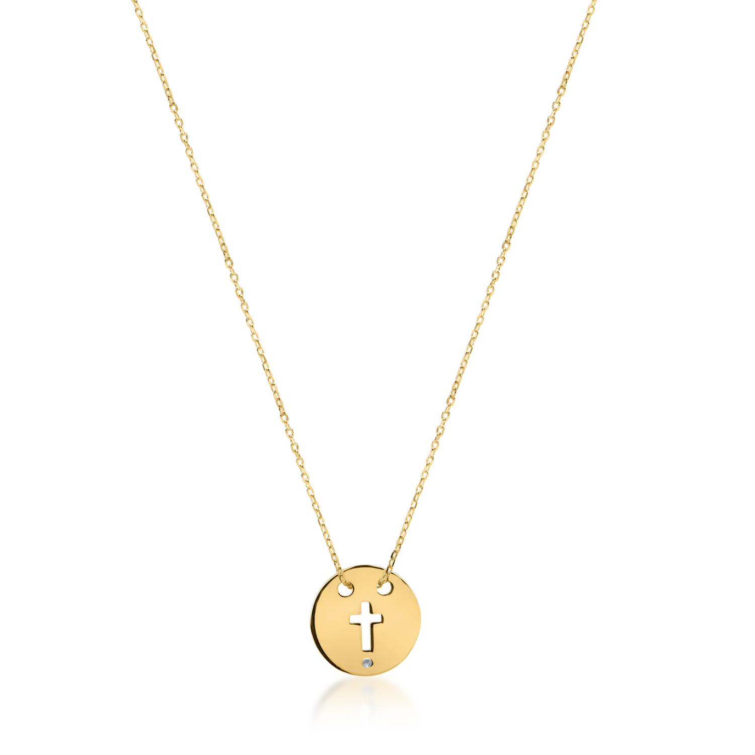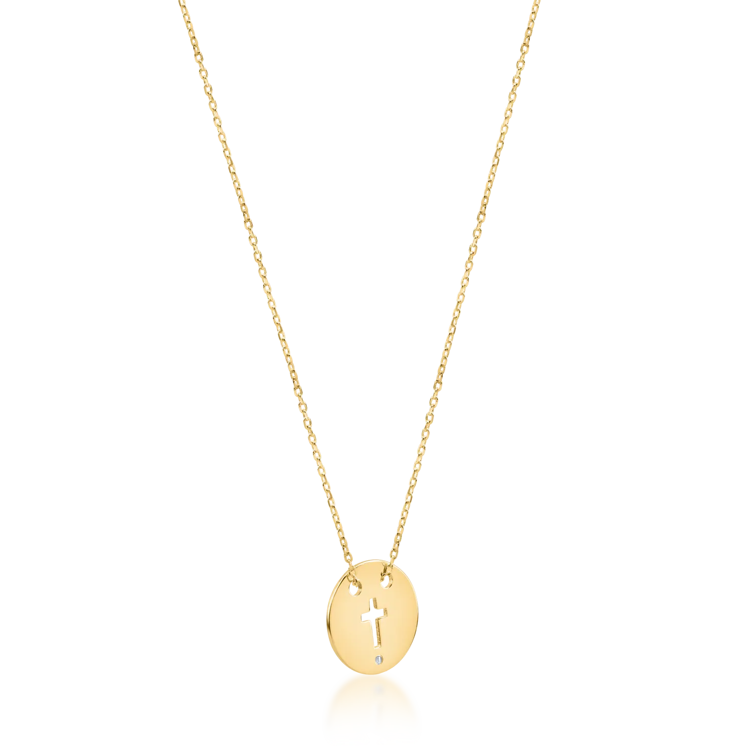Lant din aur galben cu pandantiv banut cu cruce cu un diamant de 0.005ct