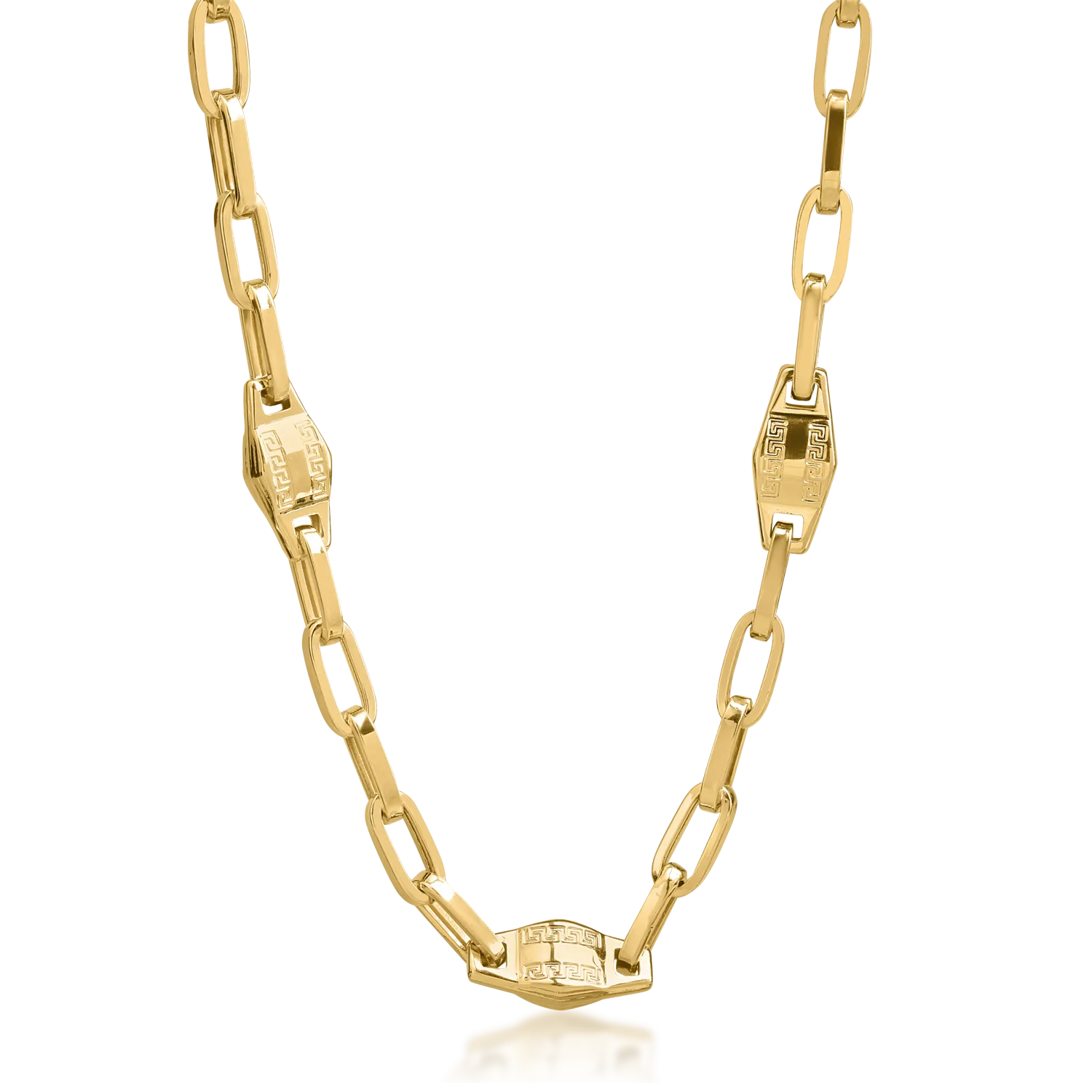 Eleganta este un stil de viata. Realizat pentru cei care isi seteaza mereu noi provocari, lantul din aur galben pentru barbati se remarca prin complexitatea designului si finisajul metalului lucios. O alegere ideala pentru cei care doresc sa-si depaseasca limitele.