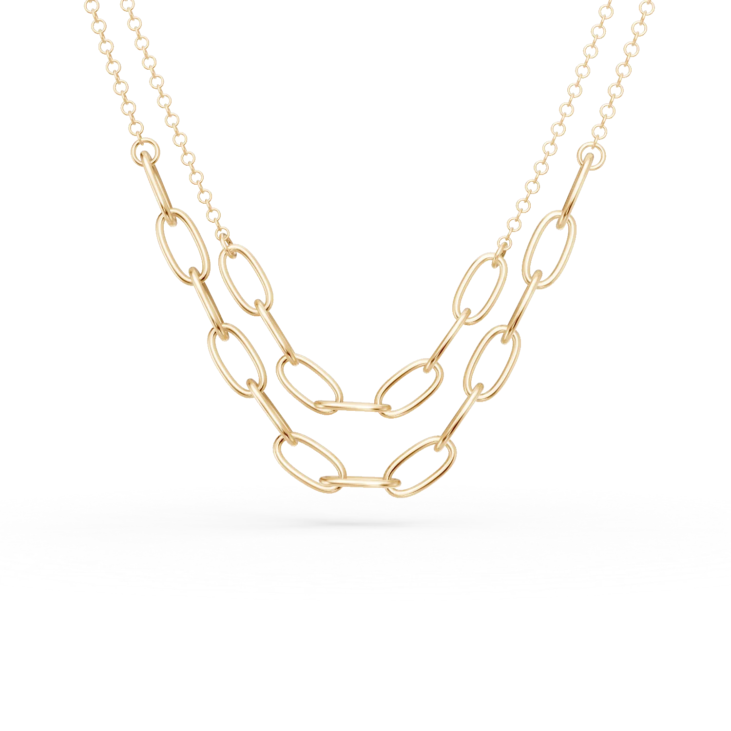 Acest lant dublu din aur galben imbina eleganta clasica cu un design modern si versatil. Cele doua siruri subtiri sunt completate de segmente cu zale fine, atent lucrate, care adauga textura si rafinament. Stralucirea calda a aurului evidentiaza perfect liniile curate si proportiile echilibrate, transformand bijuteria intr-o piesa ideala pentru a fi purtata atat singura, cat si in combinatie cu alte coliere. Potrivit pentru tinute casual elegante sau aparitii sofisticate, acest lant aduce un plus de stil oricarei ocazii. Descopera colectiile TEILOR si poarta luxul discret in fiecare zi!