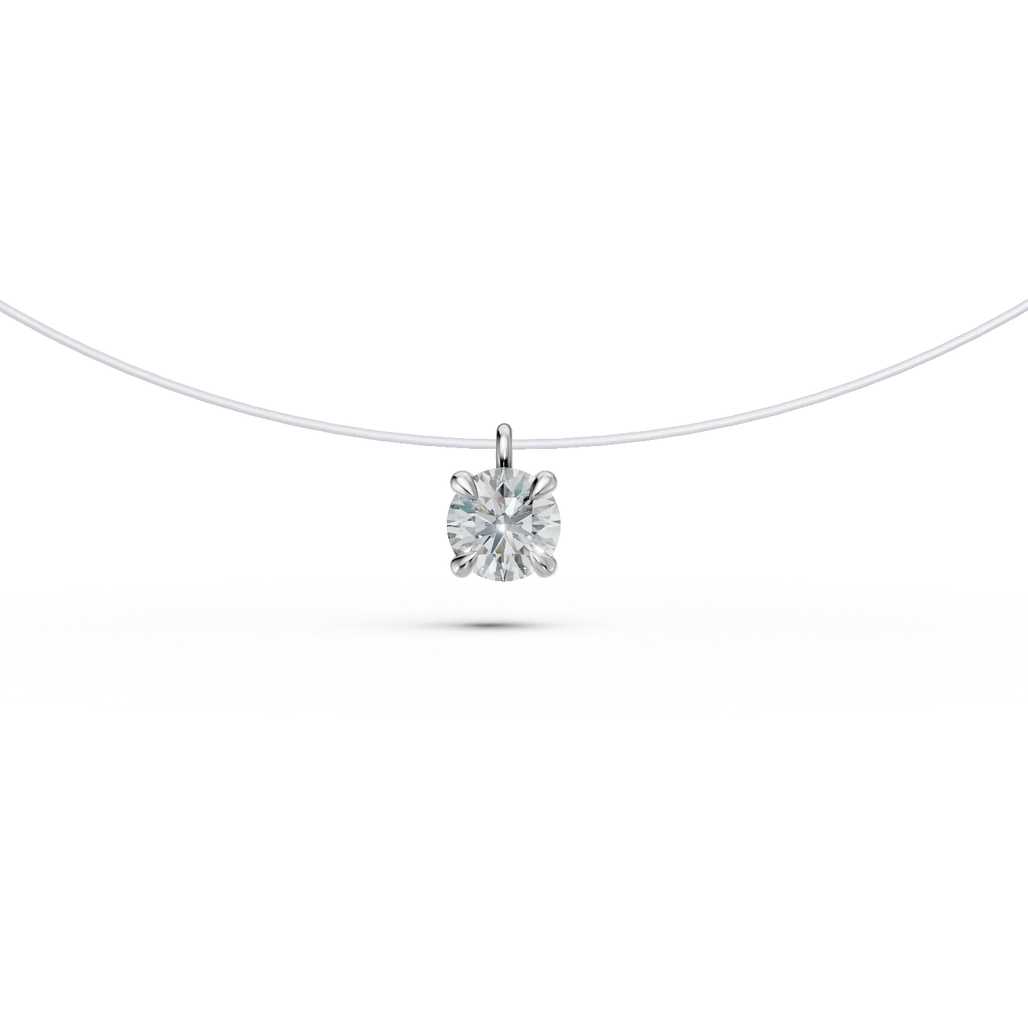 Lant fir transparent cu pandantiv din aur alb si diamant solitaire de 0.2ct