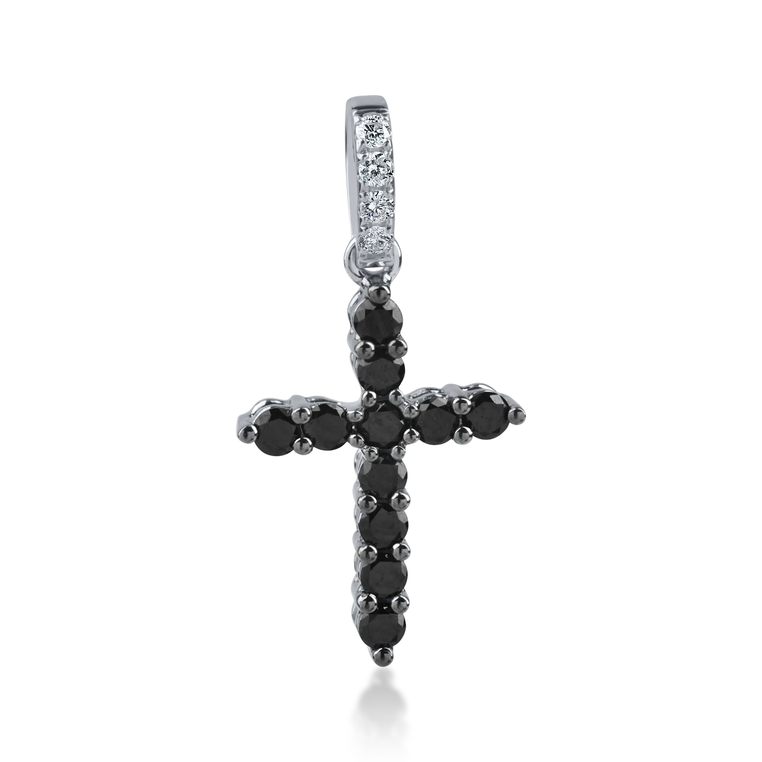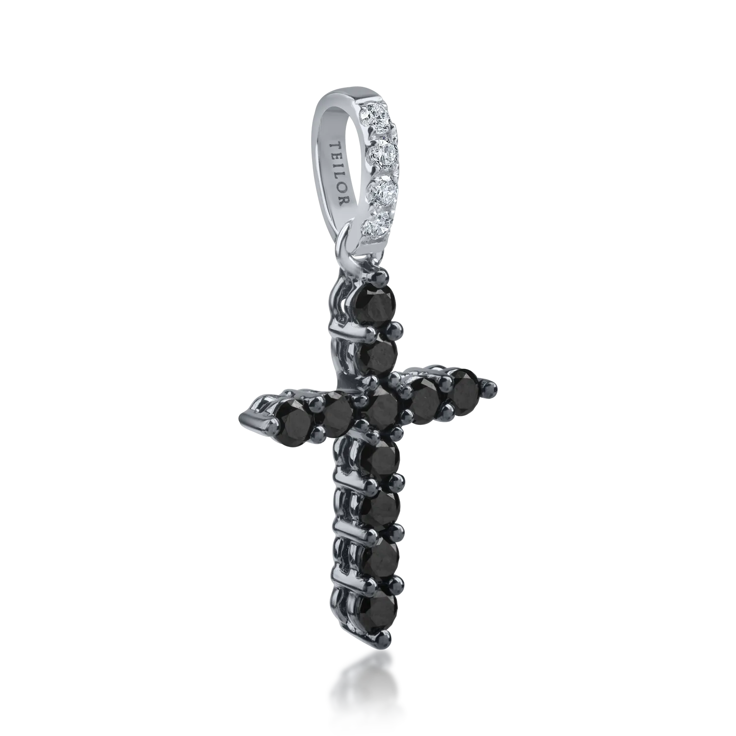 Pandant cruce din aur alb negru cu diamante negre de 0.3ct si diamante incolore de 0.05ct